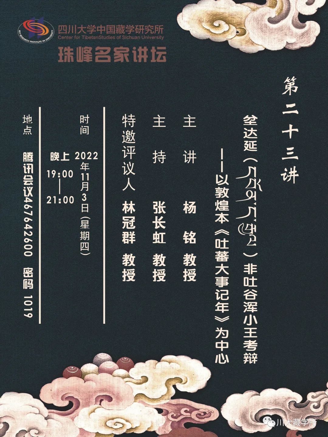 学术讲座预告:杨铭 坌达延非吐谷浑小王考辨——以敦煌本《吐蕃大事记年》为中心