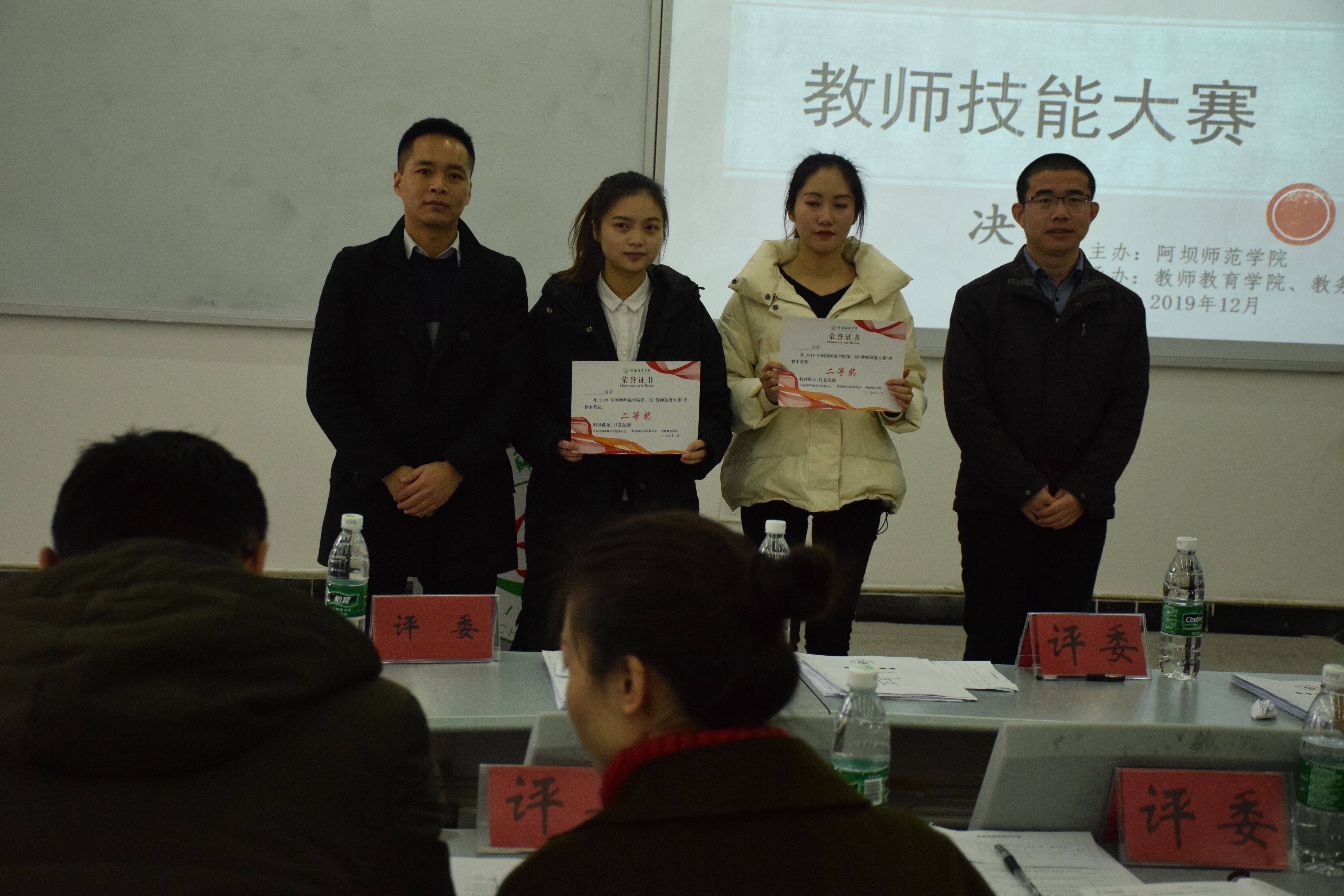 此次比赛共设优秀奖四名,三等奖三名,二等奖两名,一等奖一名。在评委老师的讨论之下评出了阿坝师范学院第二届教师技能大赛的最终获奖结果,我院刘颖同学在此次比赛中荣获二等奖。