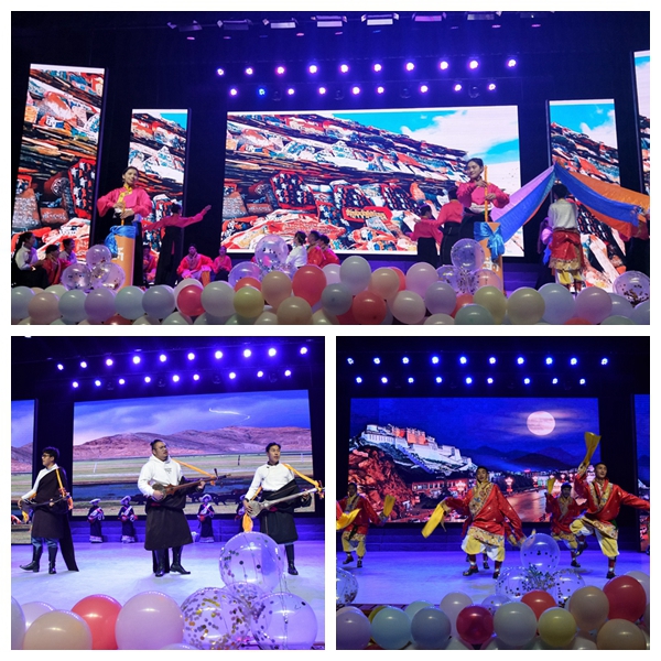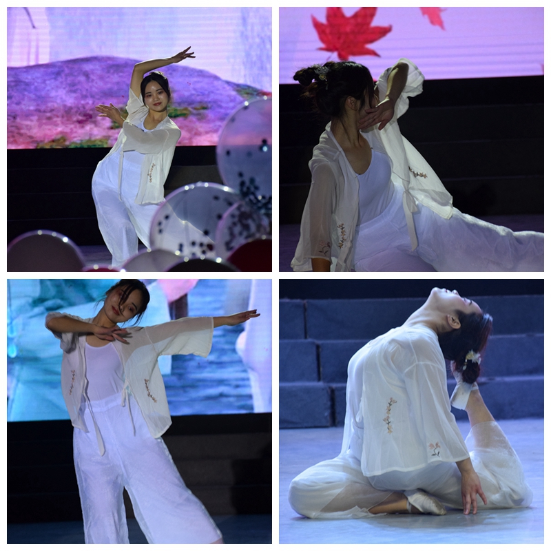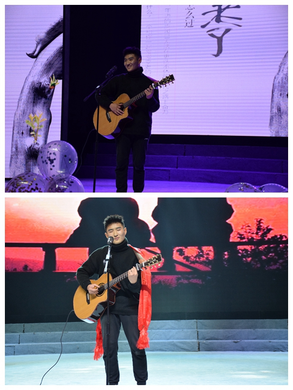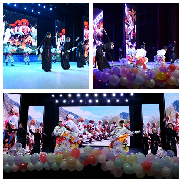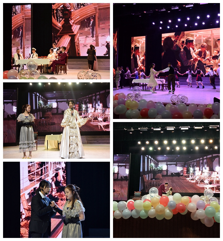 19级藏本班带来藏语歌曲《1376》。1376是最美的祝福,1376是最动听的声音,他们美妙的歌声让幸福随心而至,快乐随心而行。重温经典,梦翔剧社带来话剧《泰坦尼克号》。“You jump, I jump”美丽活泼的罗丝、英俊开朗的杰克和虚伪傲慢的卡尔都曾给我们留下深刻印象,而话剧演员们又以一种新的方式呈现他们,四幕剧再现了杰克和罗丝的真挚爱情与他们所受到的阻碍,令人回味无穷。接下来是由18级汉语言文学4班朱富康同学带来的吉他弹唱《当你老了》,这首歌源于爱尔兰诗人叶芝的一首诗,深情的弹唱感动全场,唱进了灵魂。尽情享受舞台,感受舞蹈的欢快和激情!19级汉语言文学1.2班以及我院文体部的同学带来舞蹈串烧《I miss you+野狼disco》,青春活力的舞蹈点燃了现场。17级藏本班的同学们也精心准备,将一段极具特色的藏族舞蹈《雪域甘露》献给大家。这段舞蹈,有他们对学院最真挚的祝福、最美好的期待,以及最炙热的爱。