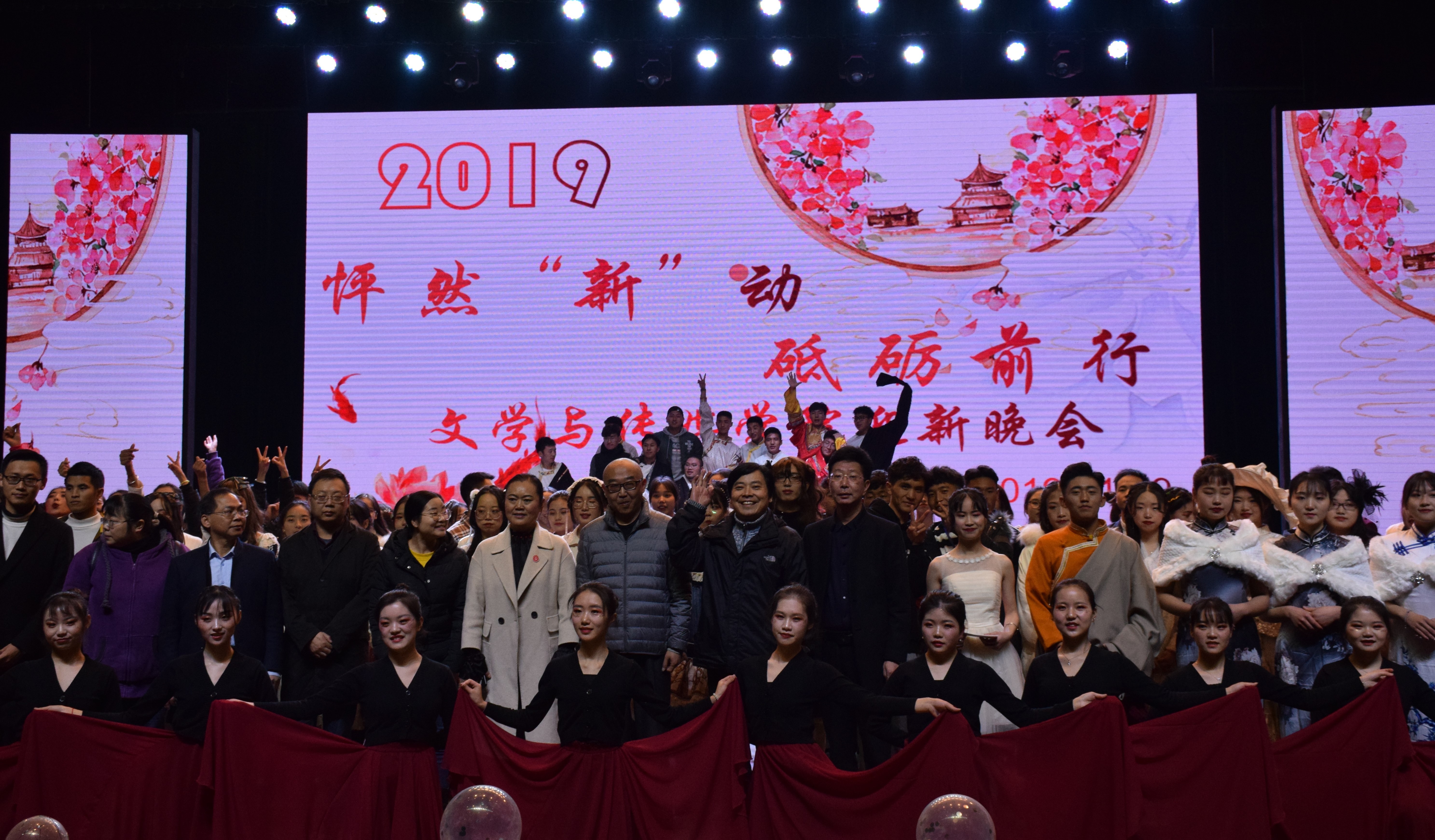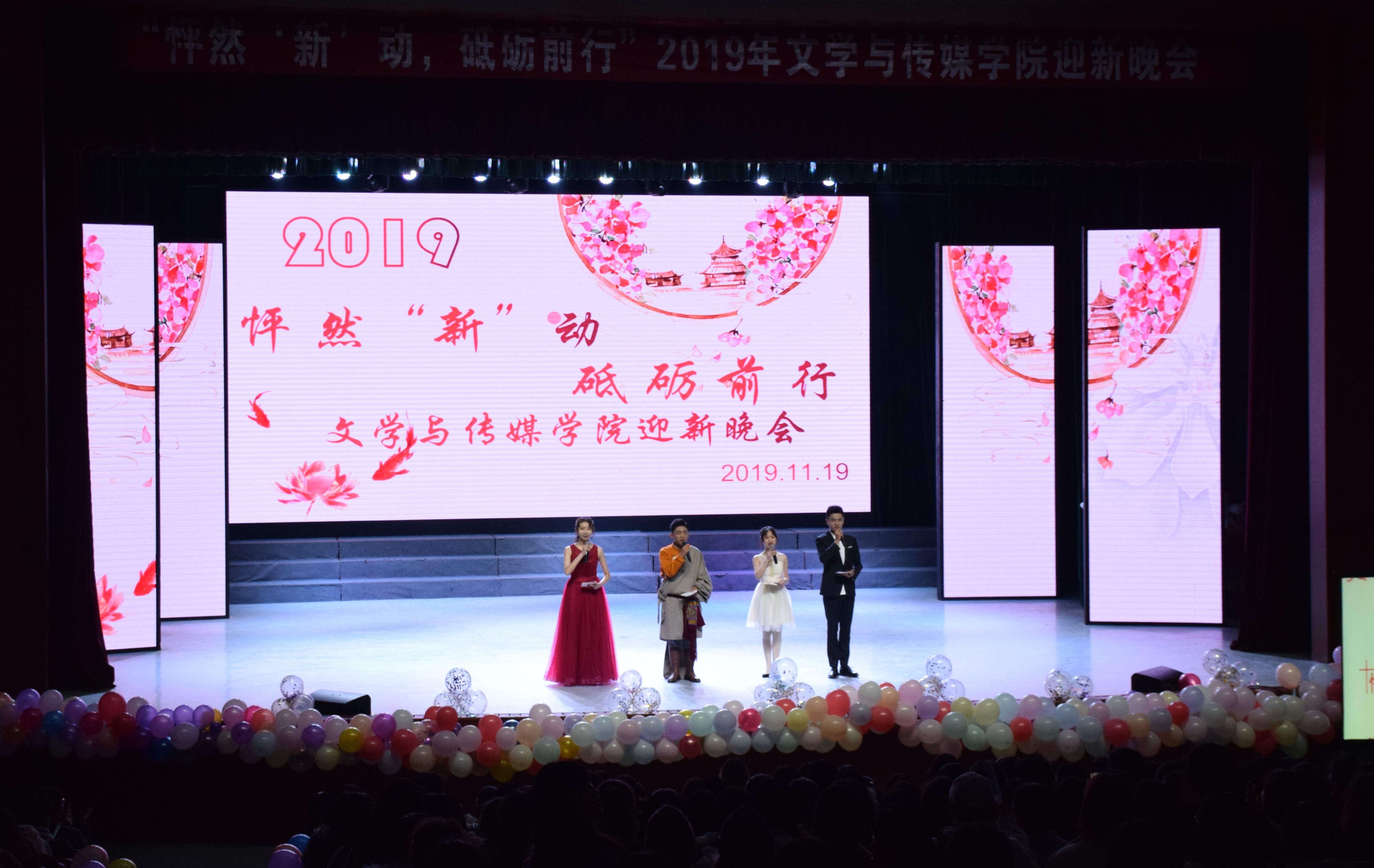 【本网讯】以青春之我,立下青春之誓言,创造青春之民族,青春之辉煌。11月19日晚19时,南苑剧场灯火通明,文学与传媒学院2019级迎新晚会在这里隆重举行。我院党总支书记凌小凤老师,副院长谭文旗教授,各兄弟院系院长、党总支书记和我院老师以及我院2017级、2018级和2019级全体学生,参与了此次晚会。