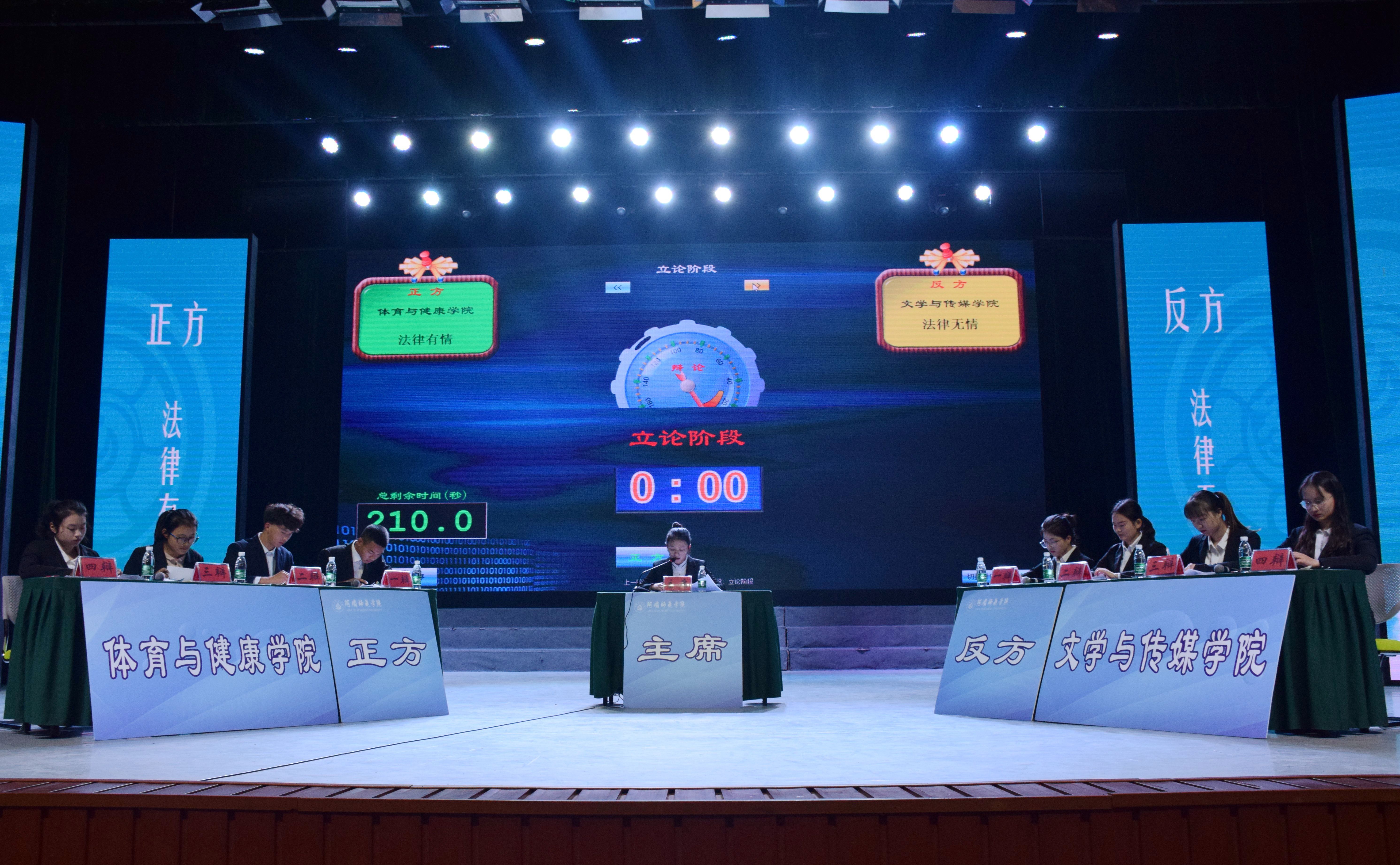 本次辩论赛共分为两场,第一场是体育与健康学院与我院的季殿军争夺战,第二场是资源与环境学院与马克思主义学院的冠亚军争夺战。在季殿军争夺战中,体育与健康学院作为正方,我院作为反方,以“法律有情”和“法律无情”为辩题展开辩论。