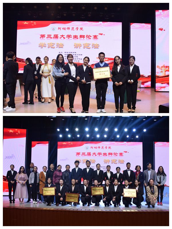 【本网讯】雄辩滔滔舌战群儒,思维清晰耳听八方,决战之夜,点燃激情。2019年11月7日晚19时,阿坝师范学院“学宪法,讲宪法”第三届大学生辩论赛总决赛在我校南苑剧场拉开序幕。学校宣传统战部部长郑文瑜教授、保卫处处长周国强老师、学工部副部长杨友国老师、宣传统战部副部长查旺斯基老师和校团委办公室主任周俊萍老师莅临比赛现场并担任评委。