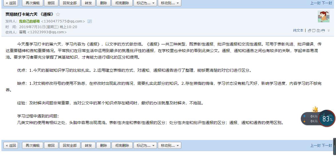 暑假期间,四位同学围绕大赛竞赛范围,根据自身掌握情况,利用已有书籍、笔记、网上资料、图书馆资料等进行训练。四位同学自行学习后,每日都会将一天的学习情况、自身优缺点、学习经验、存在的问题等,以视频或文字的方式发送至容苑老师的邮箱向其汇报。容苑老师会及时指出大家的问题,解决大家的学习问题。无论是指导教师还是四位参赛同学,在假期均未放松,她们齐心协力,争分夺秒,努力夯实基础,为大赛积极做好准备。