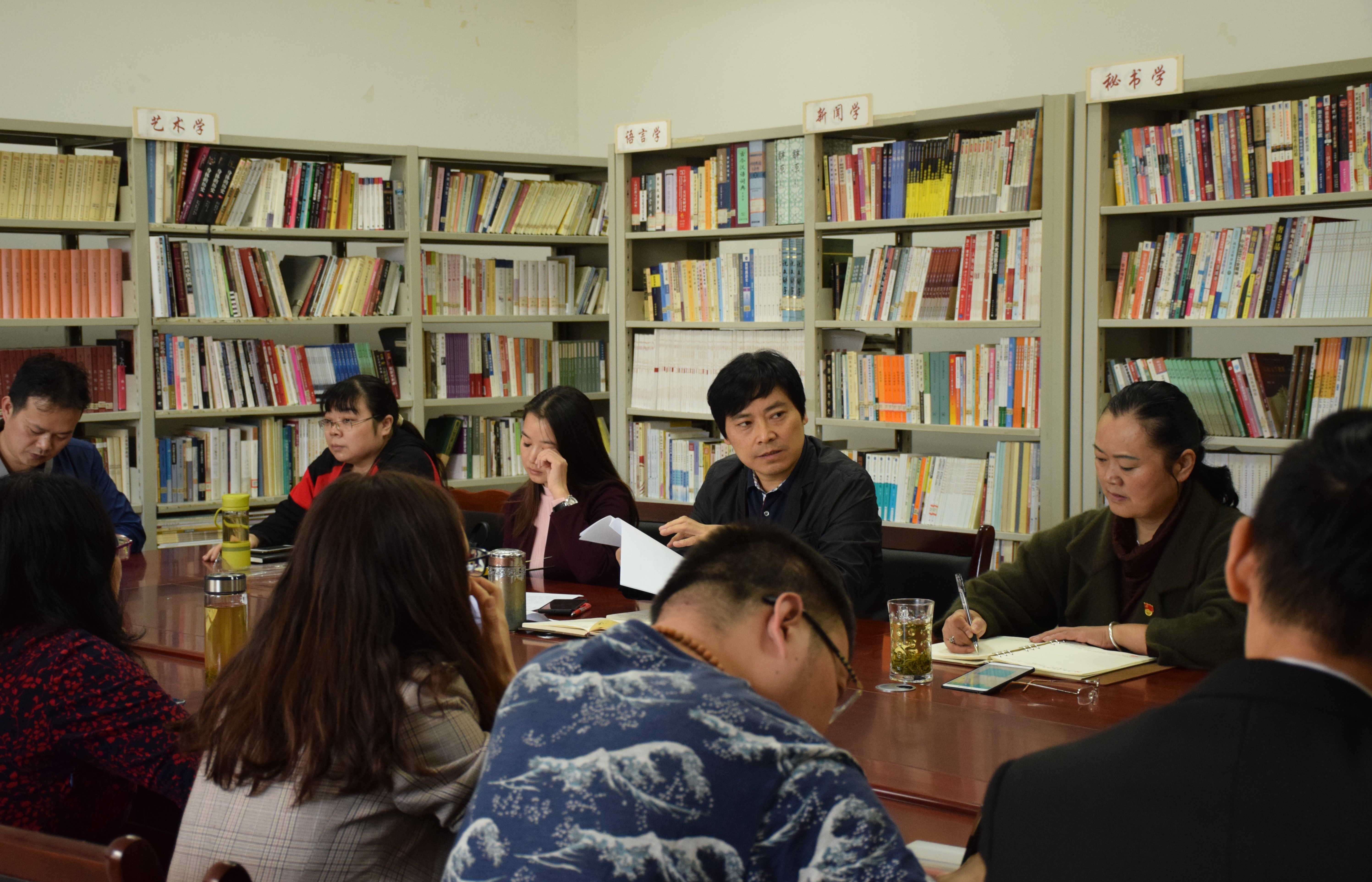 【本网讯】为部署学院教学工作、完善教学内容,文学与传媒学院于2019年9月25日下午3点在会议室B206召开了教师工作会议,出席会议的有党总支书记凌小凤老师,副院长谭文旗教授以及我院全体教师。本次会议由谭文旗院长主持。