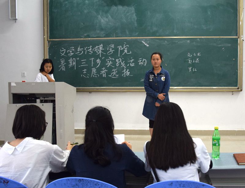 【本网讯】为深入学习习近平新时代中国特色社会主义思想和党的十九大精神,贯彻落实习近平总书记在纪念五四运动100周年大会上的重要讲话精神,充分发挥社会实践在学校人才培养工作中的重要作用。2019年6月13日13:30,文学与传媒学院于树人楼A203进行暑期“三下乡”社会实践活动志愿者选拔。我院程远蝶老师和团委学生会谢佳妙、黄珊珊、秦雨萱三名学生干部担任评委。