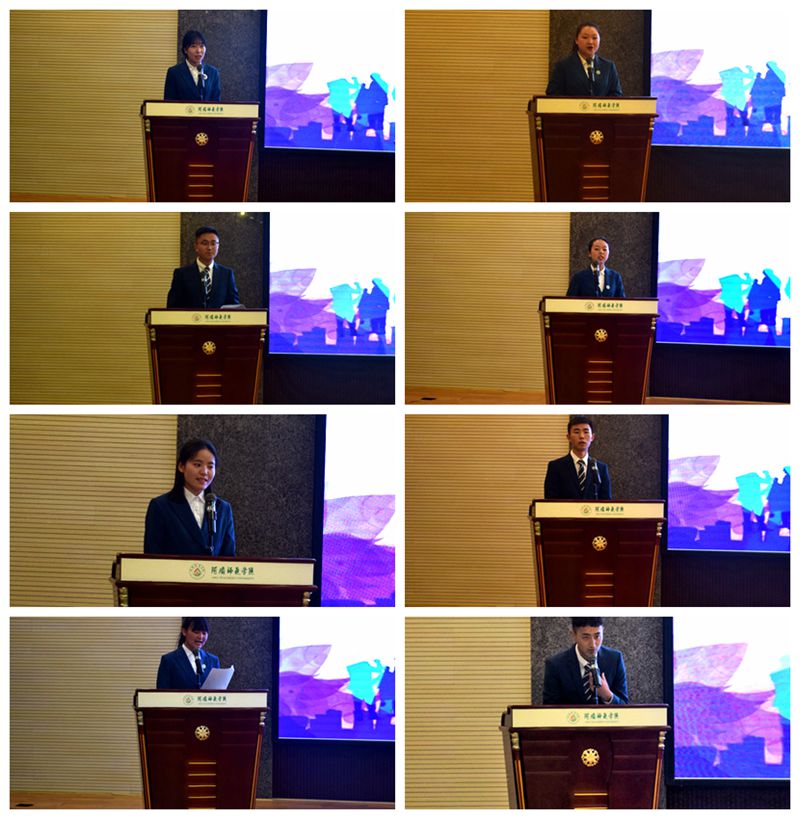 随后,八名参赛同学分别上台做参赛经验分享。第一位上台分享的是“博稽六艺”团队的贾翔麟同学。她以本次参加大赛的初选经历为重点展开分享,她表示自信是成功的第一步,不管是在生活还是学习方面,每一位同学都要足够自信并且足够努力才有可能获取进步。她认为在面对困难的时候,我们要多一些信念,少一些理智,要相信自己是优秀的,从而去努力去奋斗;“威思盟”战队的官美岑同学则以备赛过程为分享重点,她表示通过此次比赛她认识到除了在课堂上老师讲授的专业知识外,更重要的是课后的实践练习,课堂上的时间有限,需要课后的相关练习。“博稽六艺”团队的队长周宇同学在分享中着重强调团队的作用,她认为作为一个专业的秘书,礼仪、口才、写作是必不可少的,要做的优秀离不开团队协助。接下来的几位同学也相应完成了交流分享,他们大方自信的分享出自己的宝贵经验,台下的同学们表示获益匪浅并表达出自己的疑问,八位参赛同学一一作出了解答。
