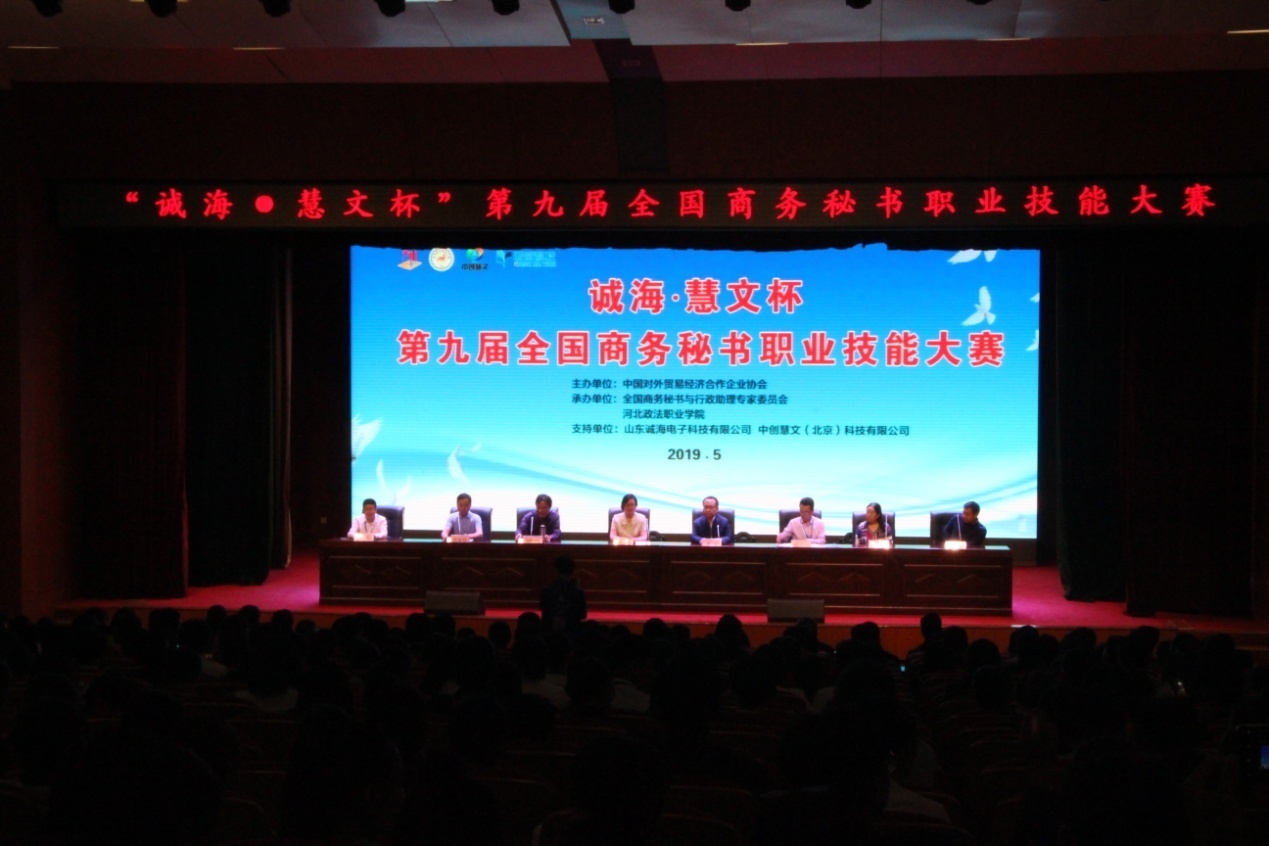 【本网讯】2019年5月18日,由中国对外贸易经济合作企业协会主办,中国职业技术教育学会国际商务教育专业委员会、广州秘书学研究会协办,全国商务秘书与行政助理专家委员会、河北政法职业学院承办的“诚海·慧文杯”第九届全国商务秘书职业技能大赛在河北政法职业学院隆重举行。
