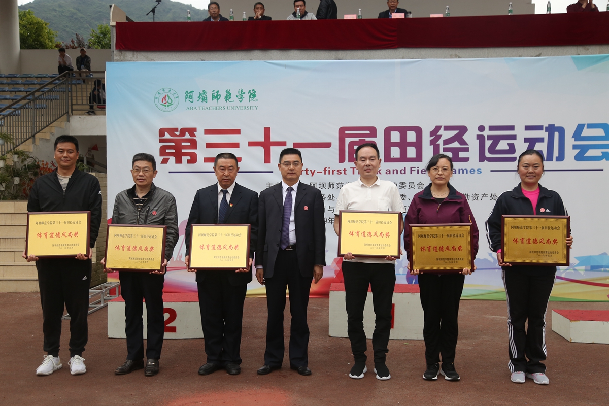 伴随着音乐,阿坝师范学院国旗方队、会旗方队、裁判员方队、教师方队以及13个学院方队依次入场。大会伊始,主持人简单介绍了莅临本次闭幕式的领导并宣读团体总分奖和道德风尚奖的获奖情况,随后,由毛英副校长颁发道德风尚奖,向武校长颁发团体总分奖。在热烈的掌声中,毛英副校长进行了闭幕式致辞,在同学们的欢呼雀跃声中,向武校长宣布第三十一届田径运动会圆满闭幕。