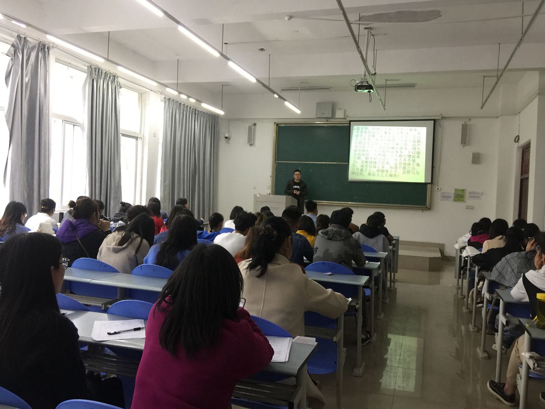 【本网讯】为进一步提升我院“古代文论”课程的教学质量,4月17日下午4:00,文学与传媒学院全体教师及部分同学在树人楼A203听取梅伟老师讲授的《古代文论》课程。