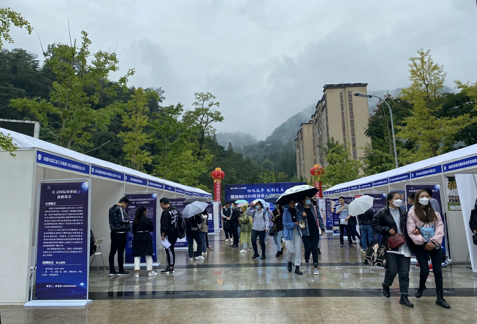 【本网讯】为了更好地拓宽毕业生的就业渠道,2020年9月25日下午,“智汇天府”阿坝州2020年秋季人才招聘暨高校校园专场招聘会在我校枫叶广场旁的学子大道隆重举行。中国建设银行分行、汶川敏思教育培训有限公司、四川泽明网络科技有限公司等多家企业来我校招聘人才,我院毕业生积极参加了此次招聘会。