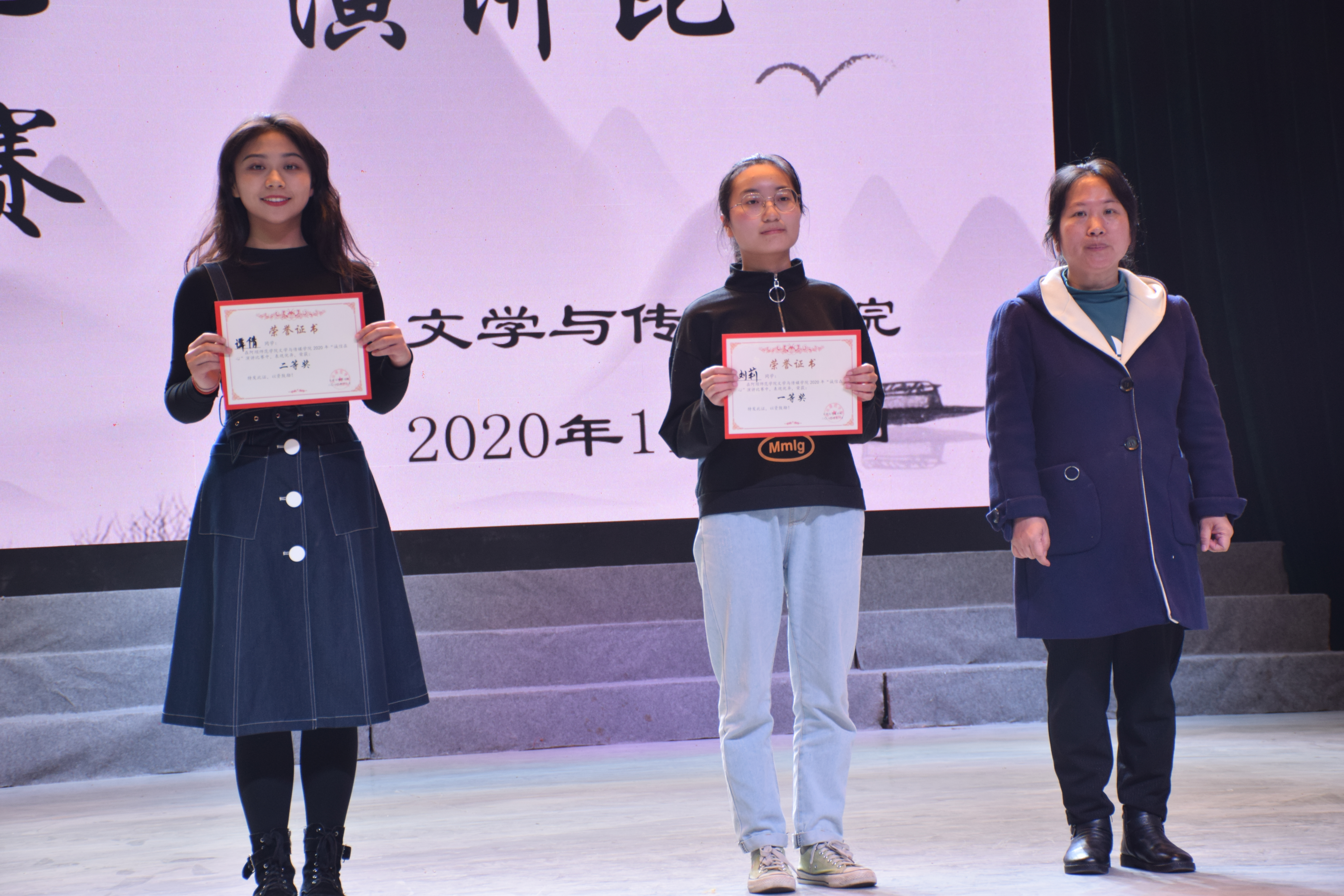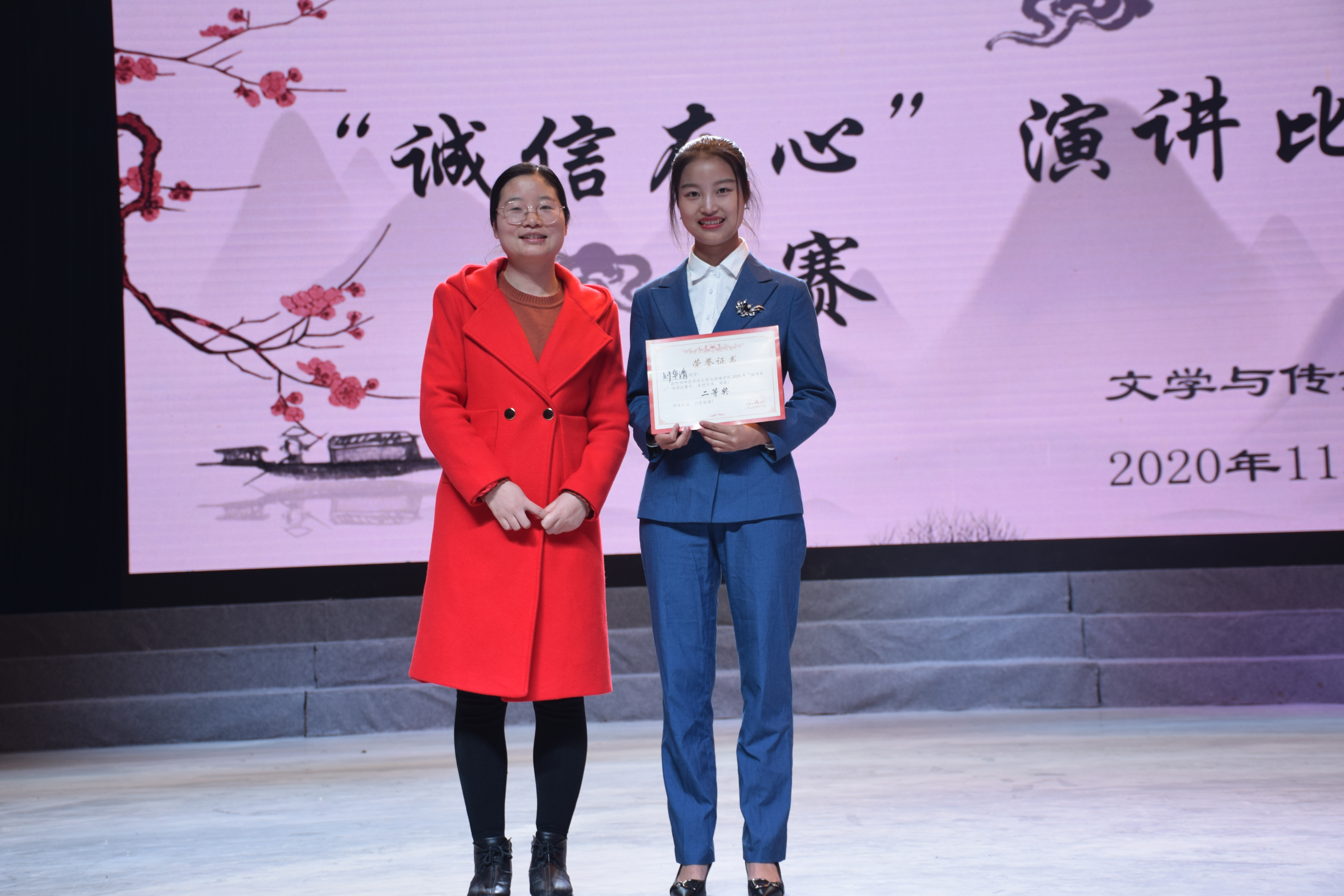 参加比赛的10名同学围绕“诚信在心”等方面,向大家阐述了自己的观点,一篇篇发自内心的深情演讲使人受益匪浅。其中2020级汉语言文学4班的刘莉同学的《寻回诚信的芬芳》感染着每一位观众,优美的声音,抑扬顿挫的语调,把现场的气氛一次又一次的推向了高潮。2020级汉语言文学1班的谭倩同学《浅谈诚信》演讲,从“孩童时期”到“青春时期”以小见大,娓娓道来,声情并茂,时而慷慨激昂,时而舒缓动情,博得了现场观众的阵阵掌声。最后龚晓辉老师对同学们的演讲作了点评,总结了各位同学的优点,也指出了存在的不足之处,更希望同学们多参加类似活动,训练自己的口语,提高自己的舞台表现能力。