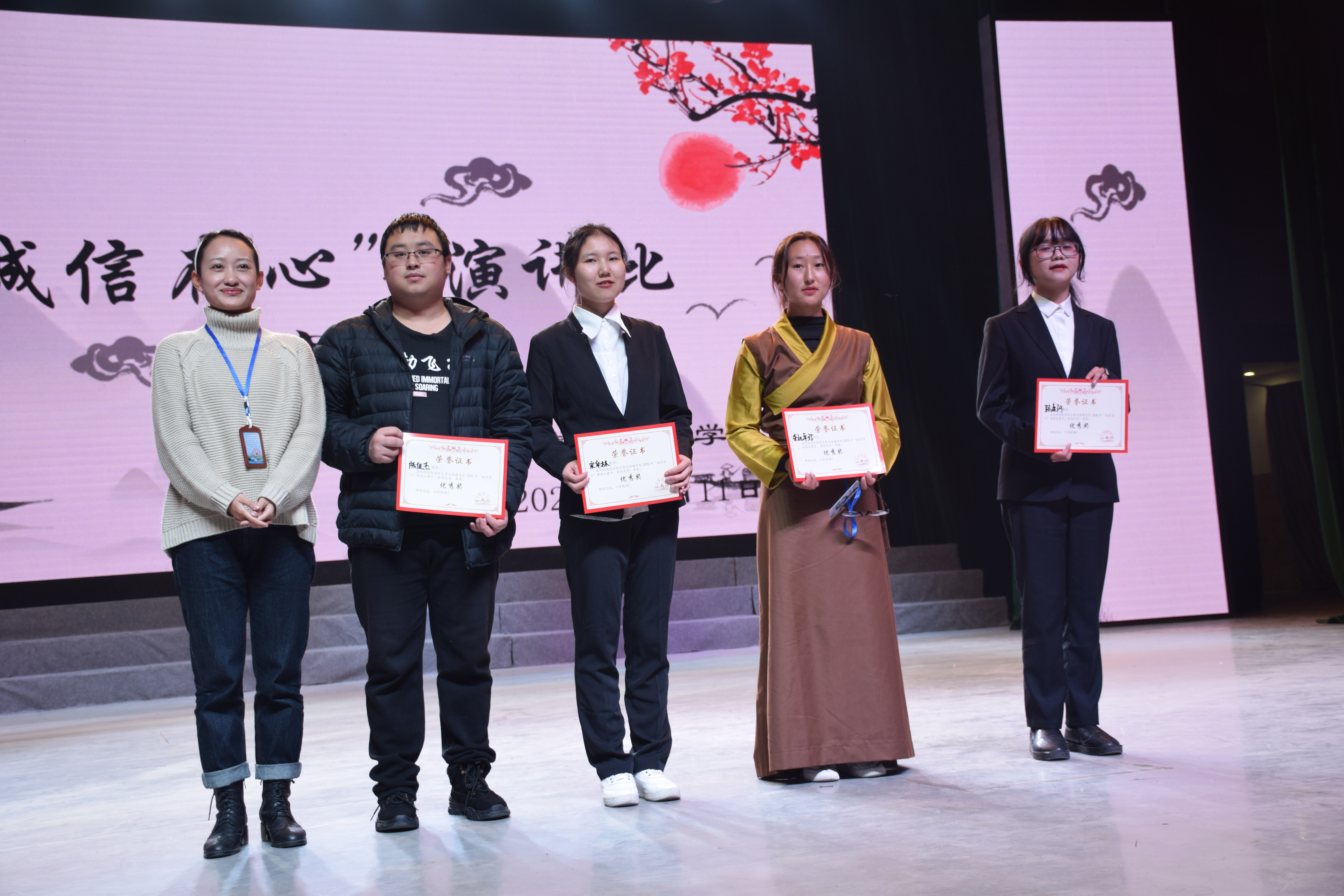 【本网讯】为塑造大学生诚信品质,营造良好校风,11月11日下午四点,文学与传媒学院在我校南苑剧场举行了以“诚信在心”为主题的演讲比赛决赛。赵云涛、龚晓辉、沈英英、牟欢、雷红霞、郭馨蔓、阿沙、马琳8位老师担任此次演讲比赛的评委。