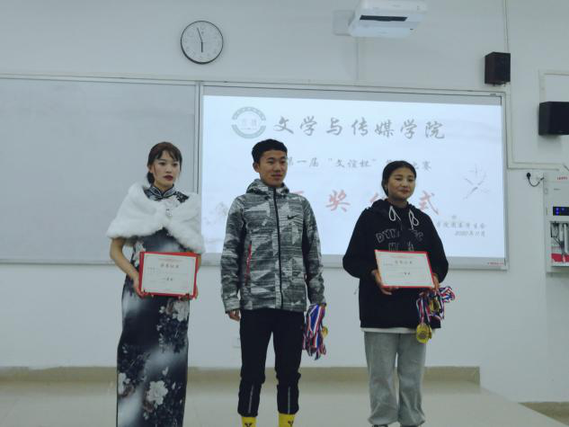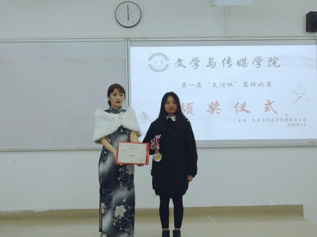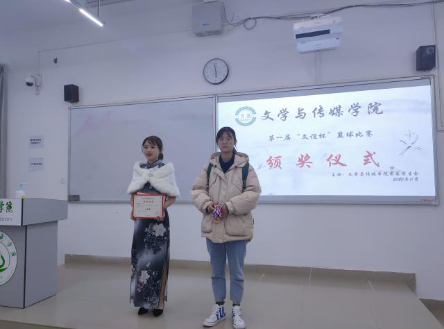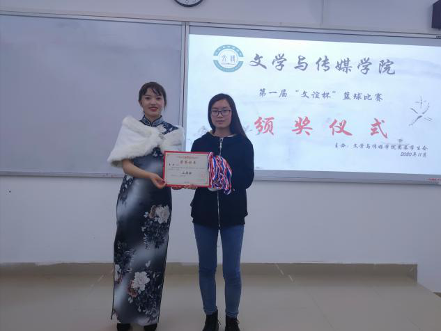 【本网讯】2020年11月12日下午5:45,文学与传媒学院文明大道校区第一届篮球文谊杯颁奖仪式在树人楼A202教室隆重举行,我院团委学生会成员参加仪式为获奖团队颁发奖杯,并对本次联赛做出鼓励发言。
