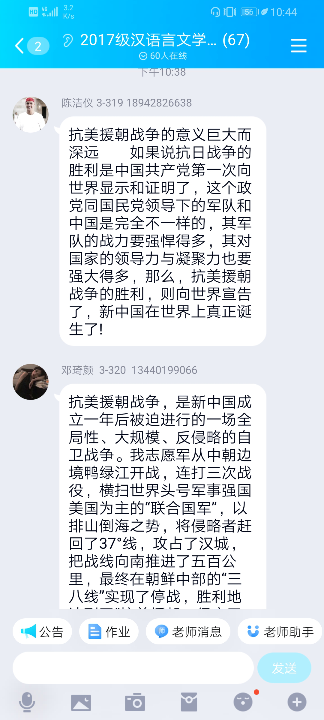 【图】在实习的同学线上观看视频并在班级群发表感触
