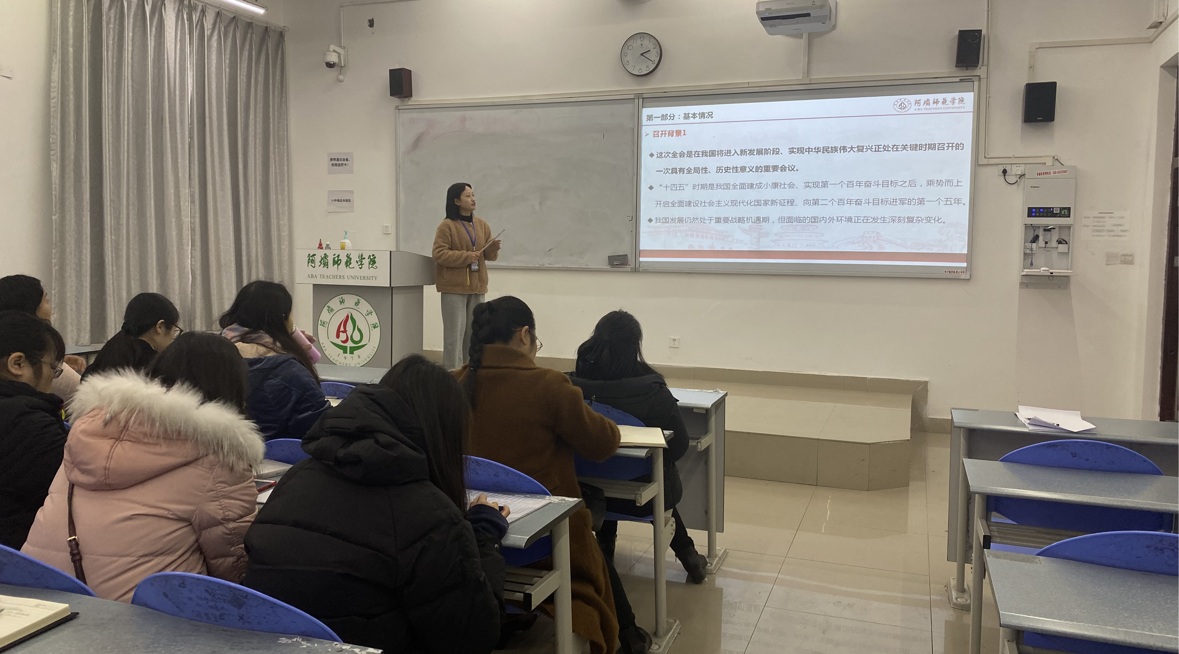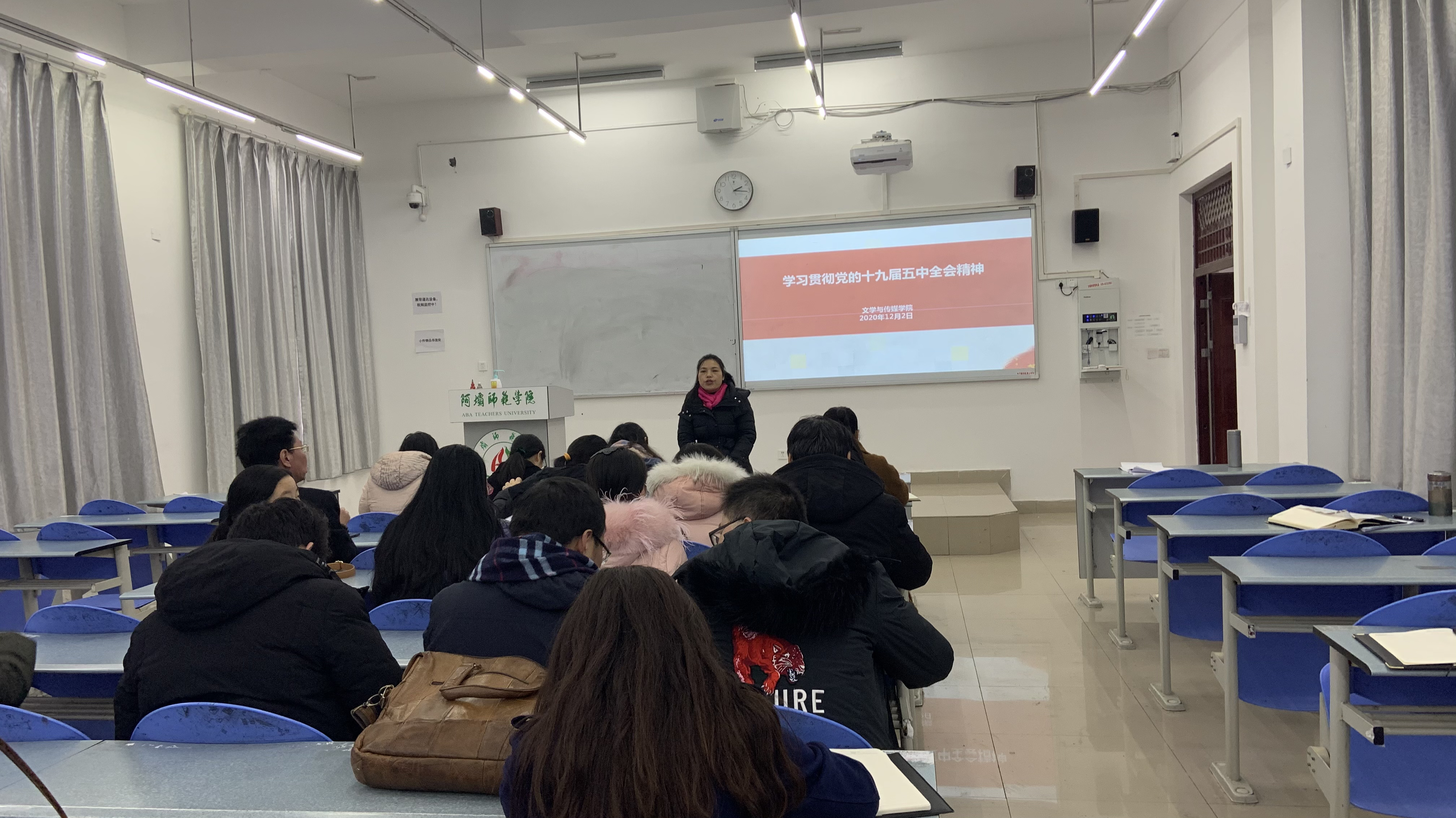 【本网讯】12月2日,我院全体教师在树人楼A202召开学习贯彻十九届五中全会精神学习会,会议由张晓英书记主持,我院教师全员到达教室按时参会。