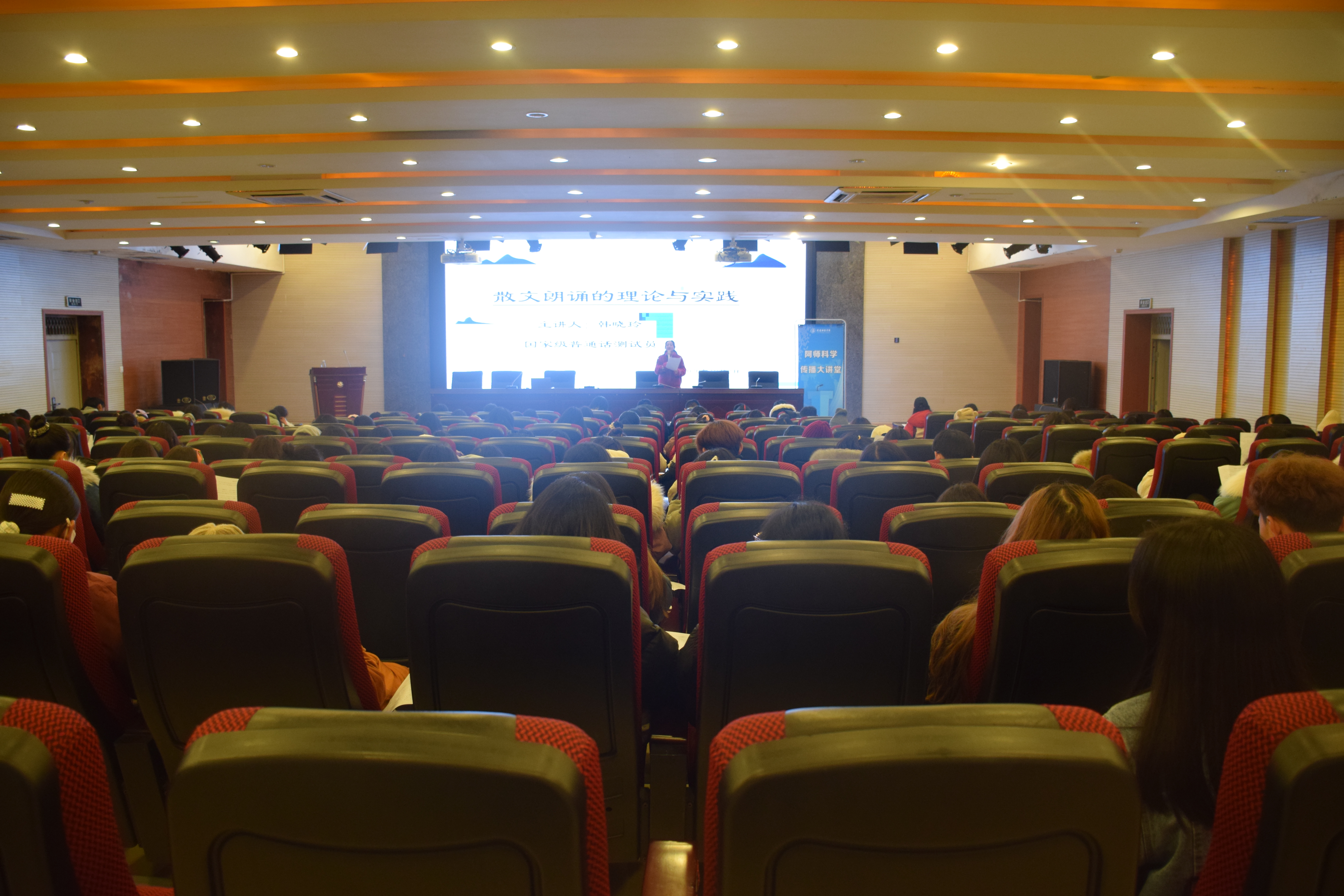 【本网讯】2020年12月2日晚上19:00至21:00,文学与传媒学院在图书馆学术报告厅隆重举办“散文朗诵的理论与实践”主题讲座,本次讲座我院有幸邀请到国家级普通话测试员韩晓玲老师来为我们讲授。