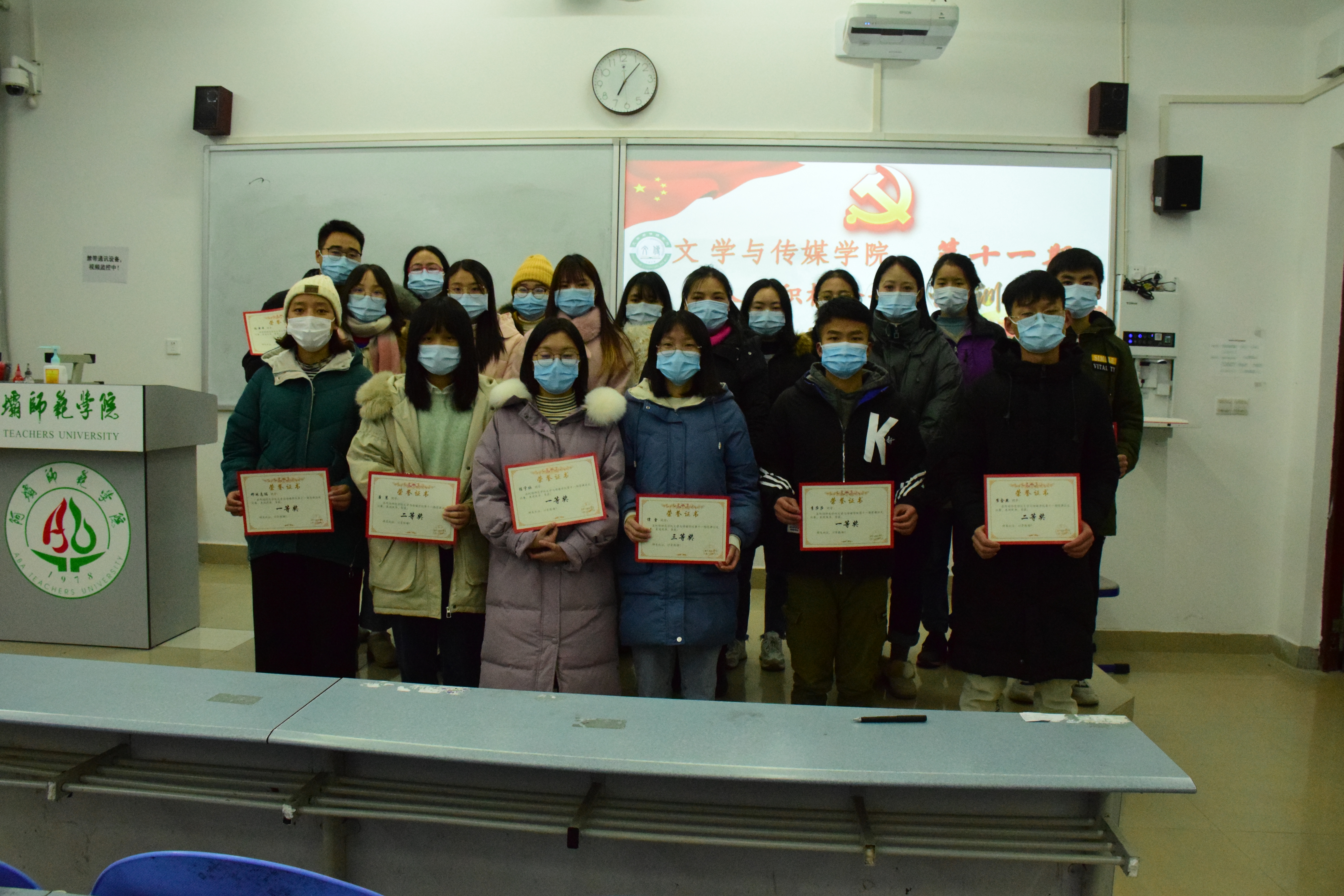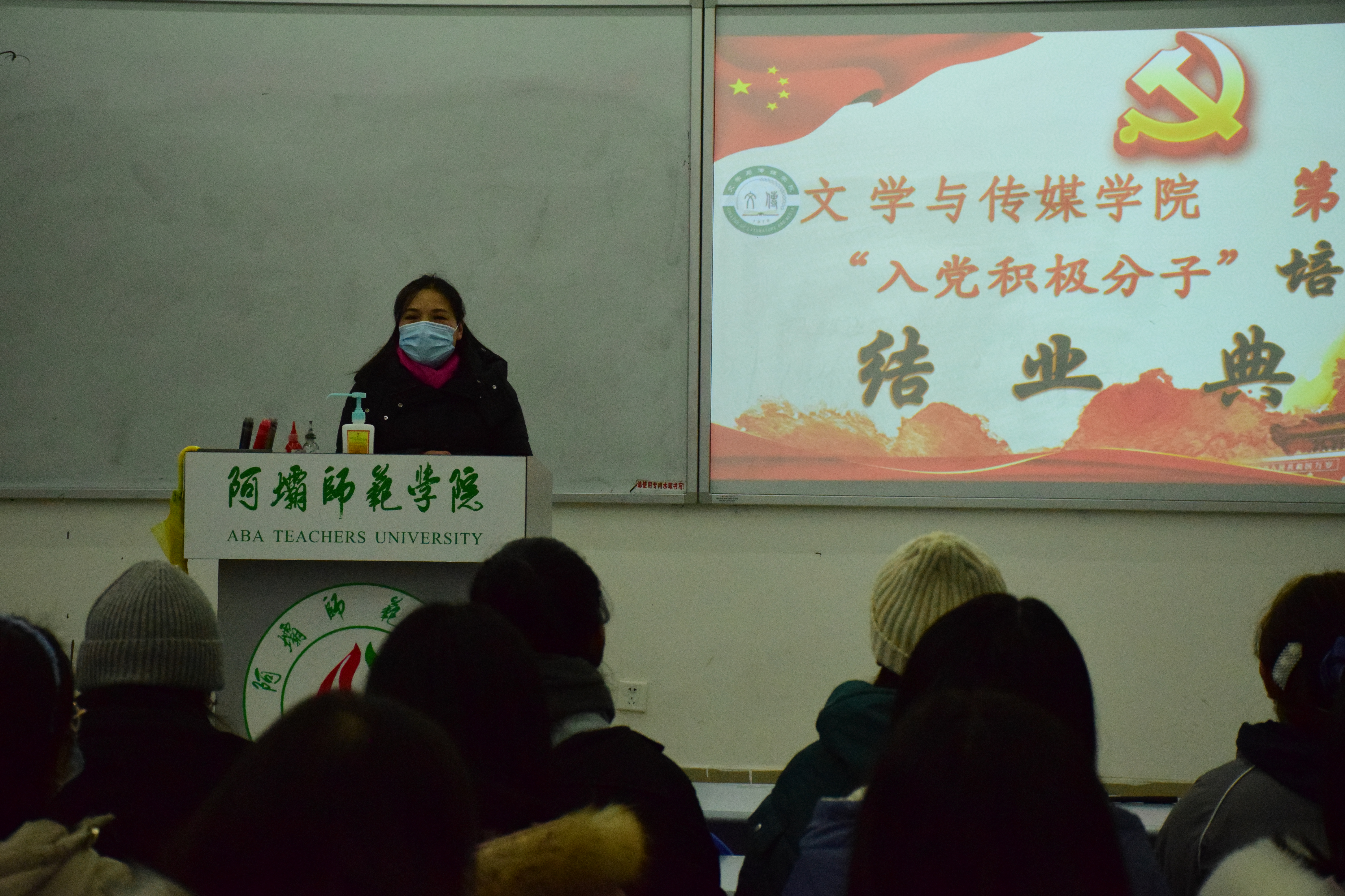 【本网讯】2020年12月16日晚上7点,我院于树人楼A301教室举办第十一期入党积极分子培训班结业典礼,总结第十一期培训工作经验,同时表彰"《为了和平》征文比赛"中表现优异的入党积极分子。此次结业典礼由第十一期党校培训组长付丽担任主持人,我院党总支书记张晓英、第一支部书记赵云涛、辅导员老师马琳出席。