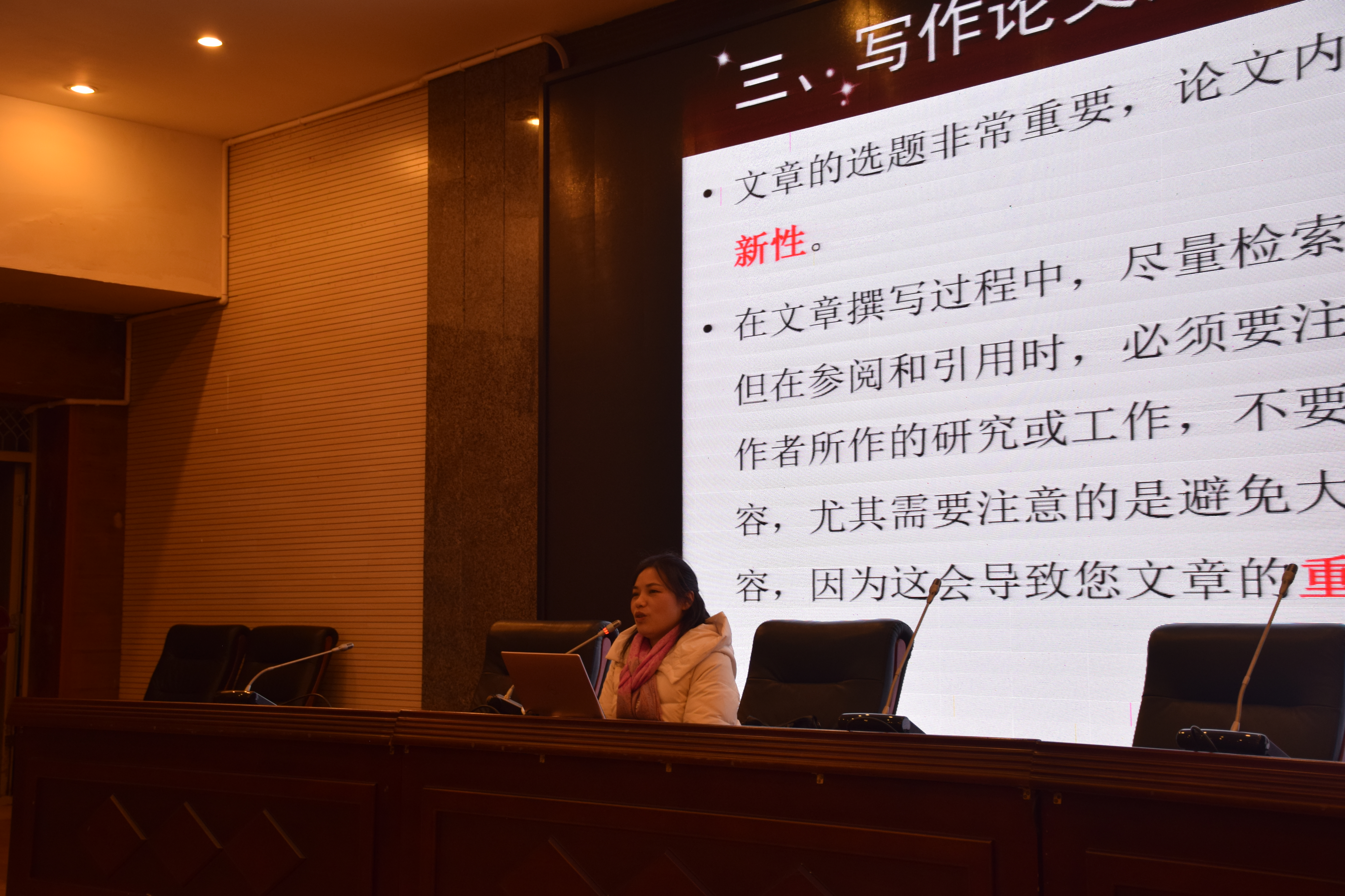 主讲人书记张晓英在讲座上,从学术论文的性质入手,逐步扩展到学术论文结构、论文要素这两个部分。在讲解这三个板块的同时,书记张晓英又在其中中穿插我院学生论文、权威论文、论文摘要的实例以充实丰富讲座内容,使讲座更加立体深刻、具象易懂。讲座接近尾声时,书记张晓英与在场同学们进行了互动交流,为同学们解答了他们在科研论文写作上遇见的疑问。