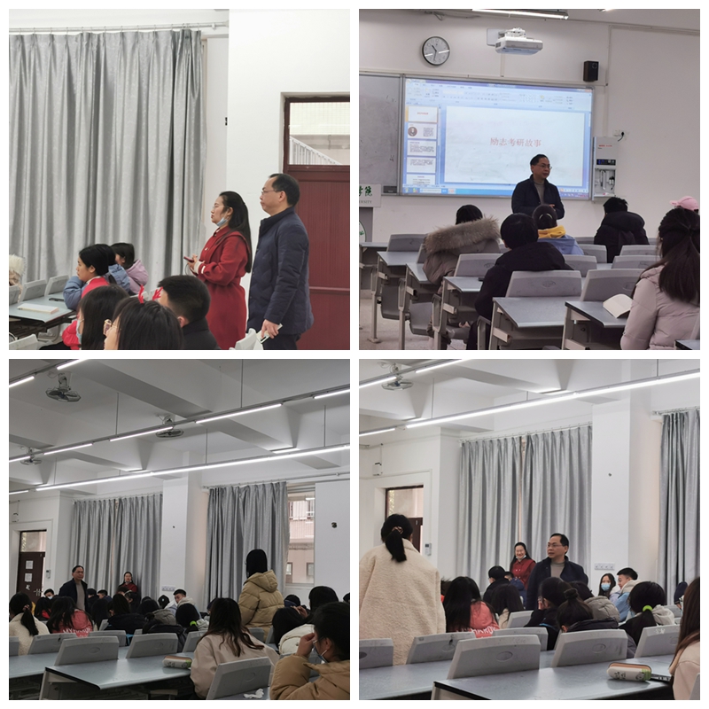 随后,由文学与传媒学院贺诗泽教授给大家分享了一些考研前的准备工作、学习方法,并解答了关于同学们对考研这方面有疑问的地方。最后由辅导员费作芽老师总结了此次班会活动。