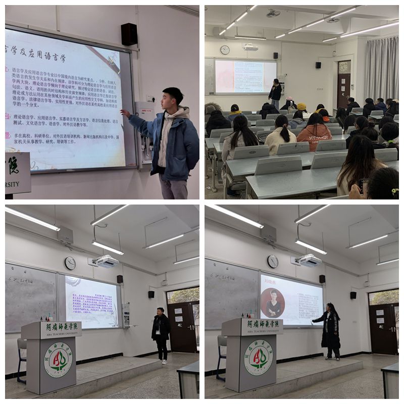 此次班会活动分三个部分进行,首先由学习委员张埸杰同学给大家介绍了包括语言学及应用语言学、汉语言文字学、文艺学、中国古典文献学、中国古代文学、中国现当代文学、中国少数民族语言文学、比较文学与世界文学8个二级学科和若干个研究方向。在介绍完学科和研究方向之后,由宣传委员闫雪静同学为大家讲解了考研的基本流程和注意事项之后是由心理委员宋世芳同学为大家分享了考研经验,最后由组织委员安婷同学给大家讲述了关于考研的故事。在班委的组织下,同学们基本上了解了考研的相关事宜。