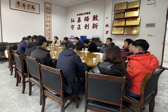 【本网讯】2020年12月4日上午,谭文旗院长一行八人到达内江师范学院文学院,开展2021版汉语言文学专业人才培养方案、2021版网络与新媒体专业人才培养方案调研论证。内江师范学院文学院党总支书记李达军教授、院长刘云生教授、党总支副书记刘正丽教授、副院长张文彬教授、梁明玉教授及教研组人员,我院熊刚副教授、贺诗泽副教授、张高宇博士、沈英英老师、潘春霖老师及辅导员费作芽、阿沙等老师参加了此次调研论证。调研论证会由文学院刘云生院长主持。