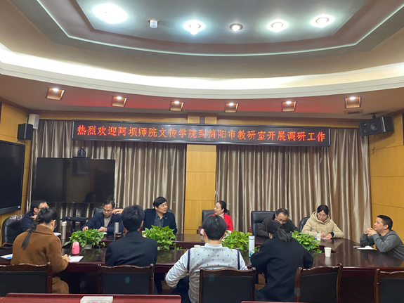【本网讯】2020年12月3日15: 00,我院8名教师由谭文旗院长带队,到达简阳市教研室进行2021版汉语言文学专业人才培养方案调研论证,并开展人才培养规格和市场需求的调研。简阳市教研室主任毛慧及其他老师,我院熊刚副教授、贺诗泽副教授、张高宇博士、沈英英老师、潘春霖老师及辅导员费作芽、阿沙等参加了此次调研论证。