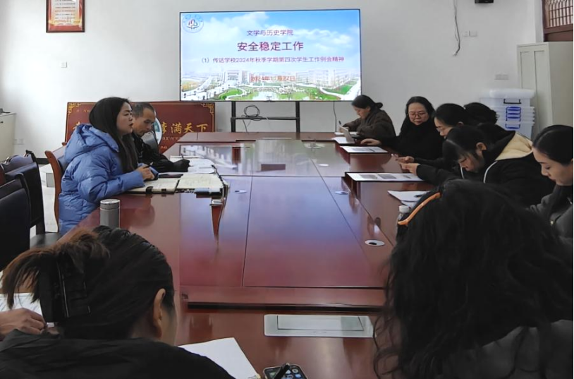 【本网讯】2024 年 11 月 27 日下午 14:30,文学与历史学院学院会议在树人楼B205会议室准时召开,会议涵盖了安全稳定、就业、教学工作以及学院青年教师风采大赛等多项重要议程。
