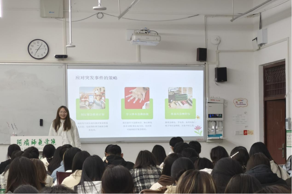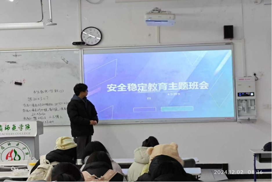 关于大学生安全方面,班长从校园内的常见安全隐患、交通安全与出行安全和网络安全风险几个方面进行讲解。如宿舍用电安全、实验室安全、食品安全等,并详细介绍了相应的预防措施。各班班长提醒同学们在校园内外遵守交通规则,注意交通安全。同时,对于需要外出旅行的同学,强调了出行前的安全准备和注意事项。