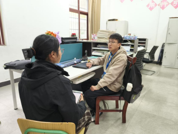 走进校园,整洁的环境、浓郁的文化氛围扑面而来。在一间明亮的会议室里,我们见到了罗红霞、谢田琼和李清龙老师。罗老师从事语文教学工作多年,一直扎根于水磨中学这片教育沃土,默默奉献,培育出一届又一届热爱语文、热爱文学的学生。当谈及如何进入教师这一行业,罗老师目光坚定且充满热情。她强调,“干一行,爱一行”。这句话蕴含着深邃哲理与务实精神的行事准则。谢老师曾向高中生讲授过应如何进行职业生涯规划。在职业规划这一方面,谢老师经验丰富。她建议我们多多尝试不同的职业,找到自己所热爱的,从此坚持下去。