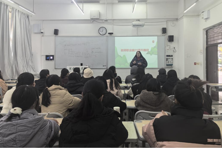 讲座过程中,赵老师为师范生提供前沿的教育理念、实用的教学技巧、丰富的实践经验分享,以及职业规划指导,强调学生们要将理论知识融入到具体的教育实践中去。