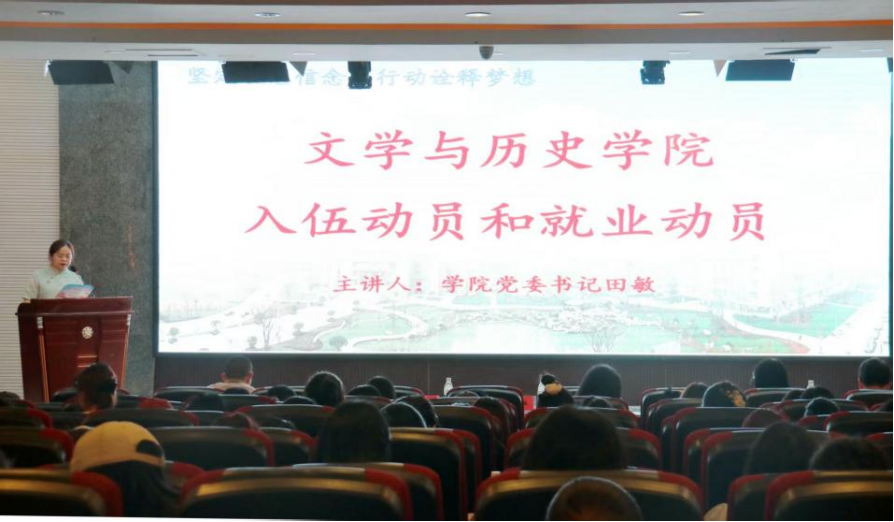 在就业与入伍动员会上,学院党委书记田敏深入分析当前就业形势与岗位需求,并详细解读国家入伍支持政策。她引导学生结合自身特长做好职业规划,从学会人际交往、坚持终身学习到树立自信、保持积极态度,多维度为学生就业抉择与入伍准备提供指导。