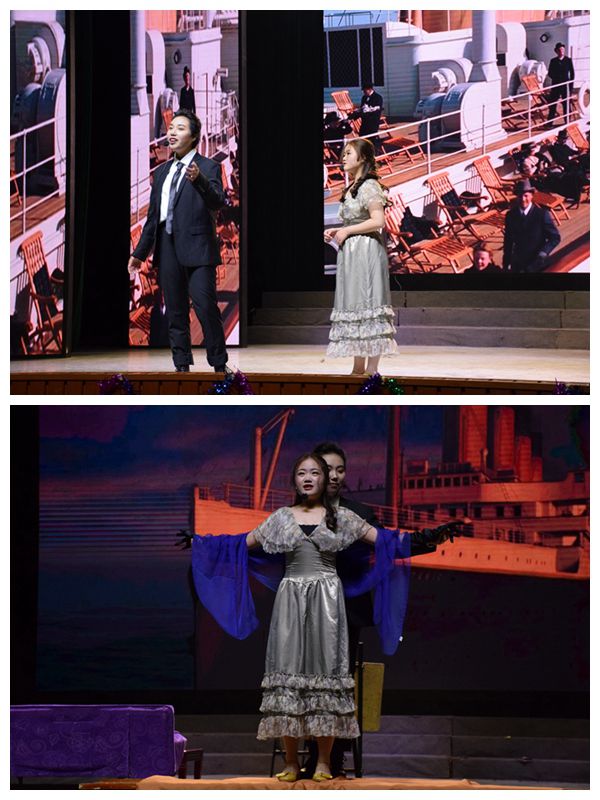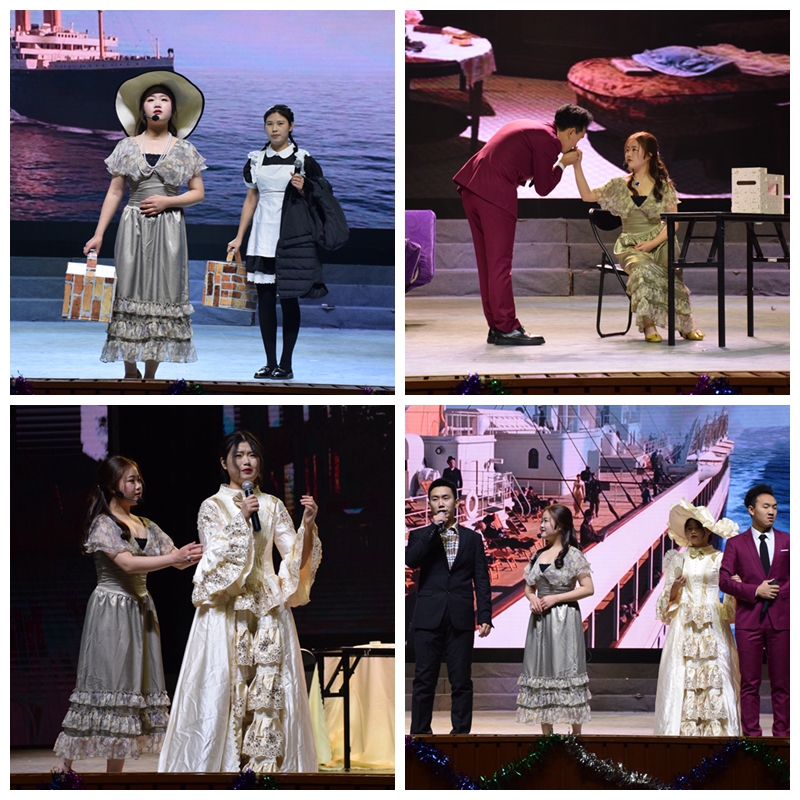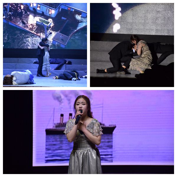 接着,由一段独白慢慢拉开了此次话剧表演的帷幕。不管是现场的布置还是演员们惟妙惟肖的表演,都立刻吸引了观众们的目光。演员们的一言一语、一举一动,都能看出他们在舞台背后的努力和用心。当富家子弟卡尔与露丝发生冲突,卡尔一怒之下打翻桌子,忍不住掐住露丝脖子追问时,全场的观众都屏住了呼吸,深深地沉浸在了表演当中。当然,“You jump I jump”的经典台词和情节也被演绎得完美无缺,让观众深切地感受到了露丝和杰克之间真挚的情感和爱情的伟大。最后,当泰坦尼克号渐渐下沉,船上人们开始慌乱,四处逃窜时,只有露丝和杰克在互相寻找彼此。伴随着杰克在自己生命的最后时刻给露丝的祝福以及露丝的深情演唱经典曲目《我心永恒》,话剧表演也进入了尾声,现场一片寂静,大家仿佛都已被带入了这凄美的爱情故事,难以平复自己的情绪。
