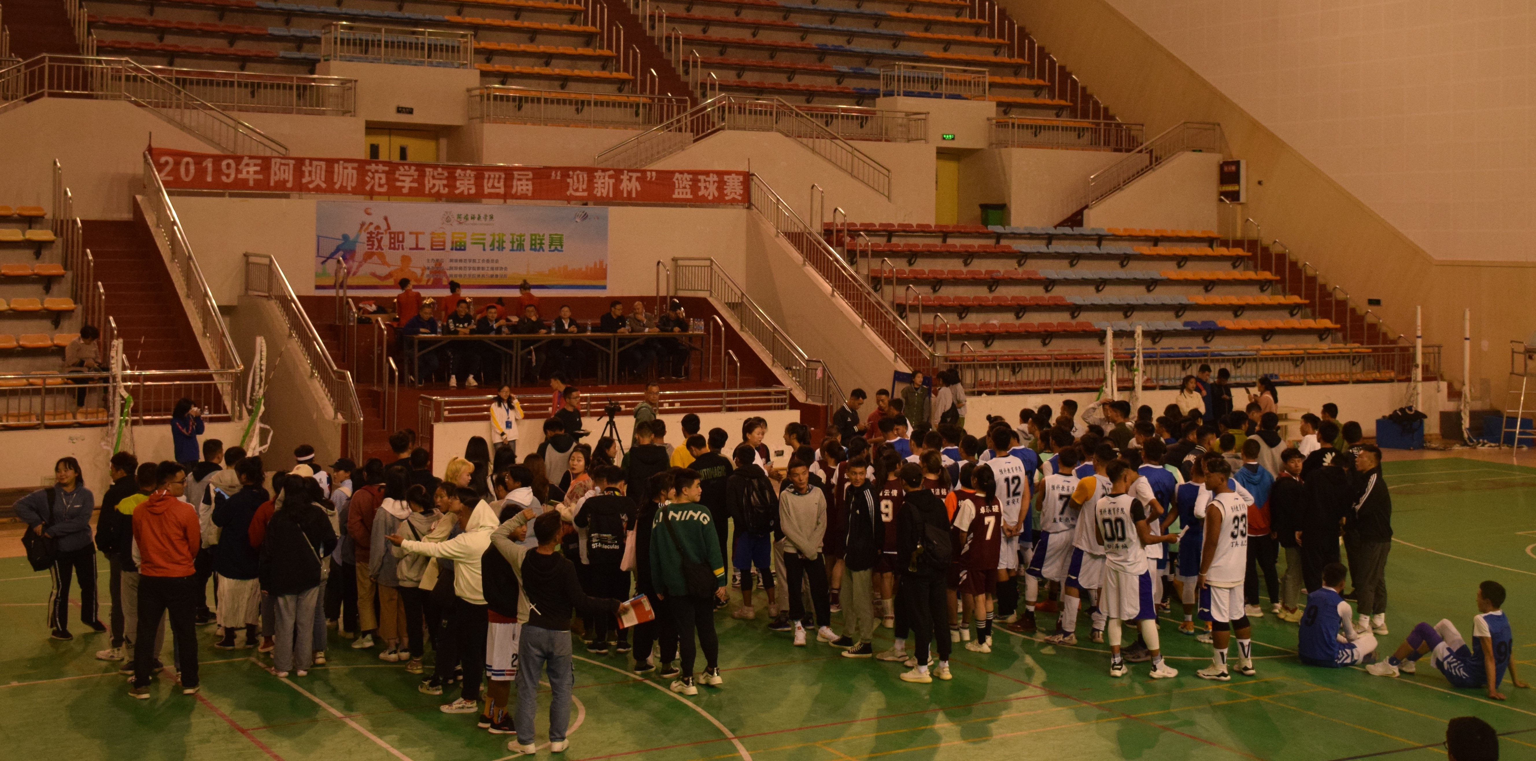 为迎接2019级新生,锻炼我校学生的体育能力,我校举行了第四届“迎新杯”篮球比赛。比赛历时三周,今日终于迎来闭幕仪式。此次赛事,运动员都发扬了“友谊第一,比赛第二”的精神,场上激烈争夺,场下握手言欢。他们团结进取,奋勇拼搏,把体育精神发扬到了极致。比赛不仅锻炼了同学们的身体,更是拉近了各学院之间的关系,让学校有了更温馨的气氛。参与比赛的每个工作人员都爱岗奉献,使每场赛事都非常激烈、精彩,赛出了水平,赛出了风格,使此次比赛取得圆满成功。