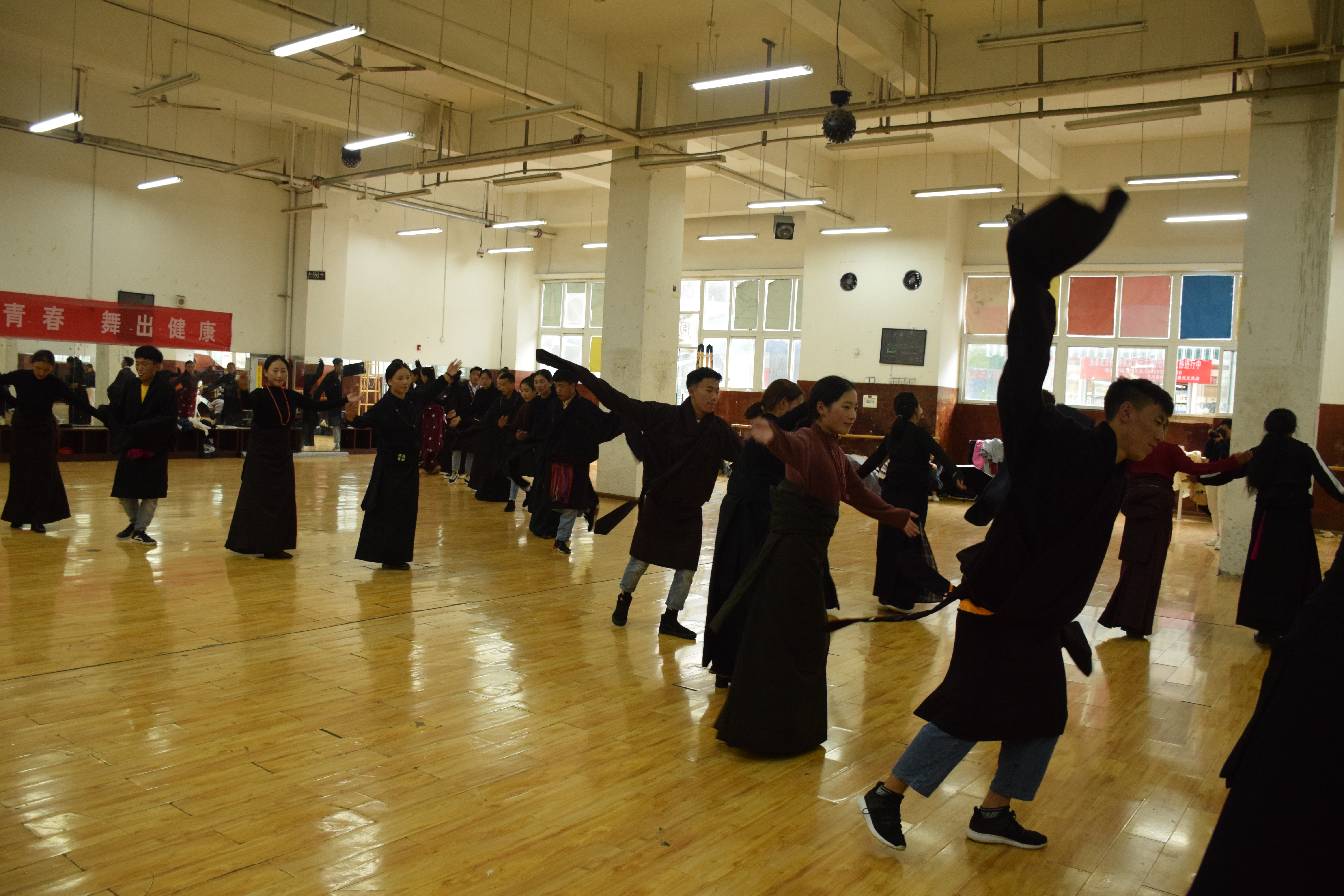 【本网讯】金秋送爽,细雨如丝。为传承藏羌民族文化,弘扬我校民族特色,增强民族凝聚力,文学与传媒学院于2019年10月24日中午12:20在周末舞厅举办2019级锅庄比赛。我院副院长谭文旗教授、吴敏老师、沈英英老师以及团委学生会学生代表到场观看比赛并担任评委。此次比赛由团委学生会文体部副部长谷雯莉同学主持。