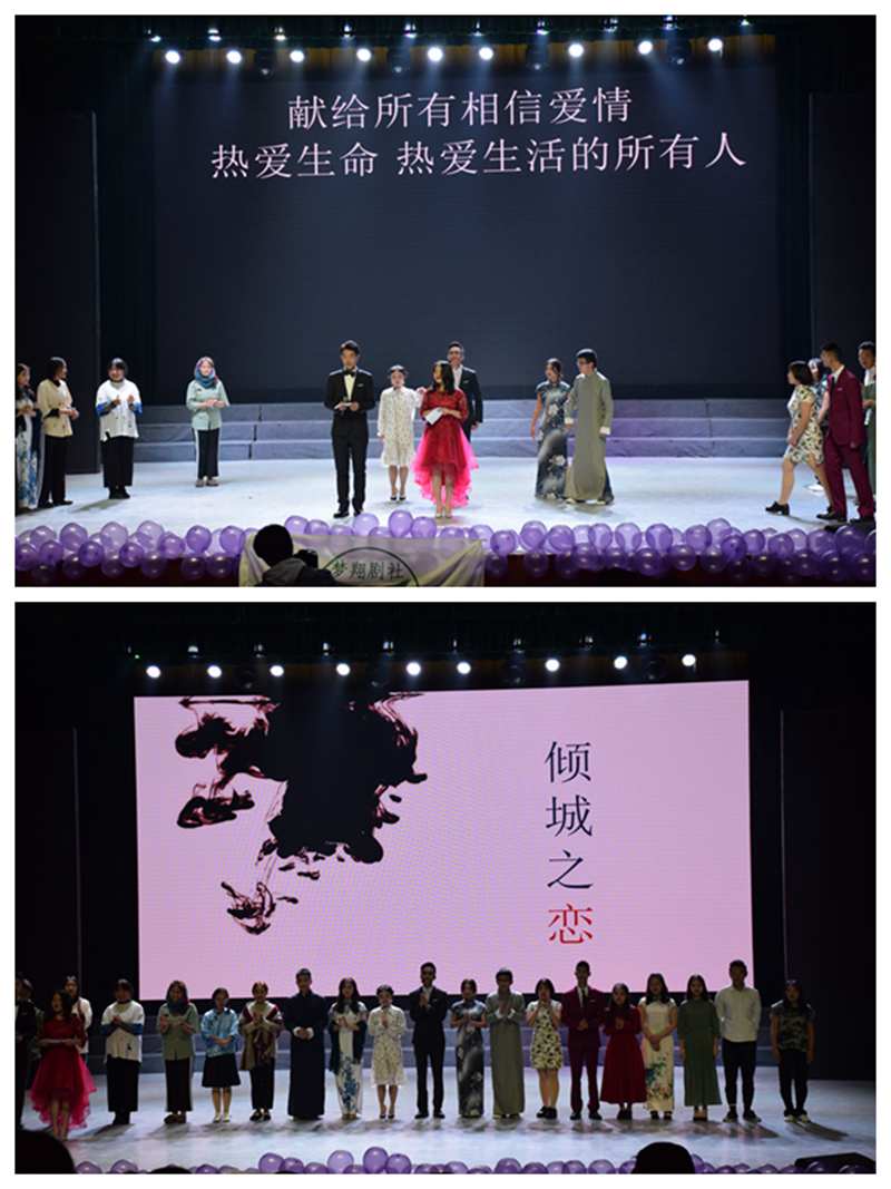 【本网讯】2018年11月23日19:00,由我校文传学院所属大学生社团梦翔剧社主办的话剧《倾城之恋》在我校南苑剧场上演,再现了张爱玲作品中战火年代的爱情故事。文学与传媒学院郭卫文老师、冷冬雪老师以及我校卜凡老师等出席本次话剧展演,全校各学院众多学生积极前来观看此次演出。