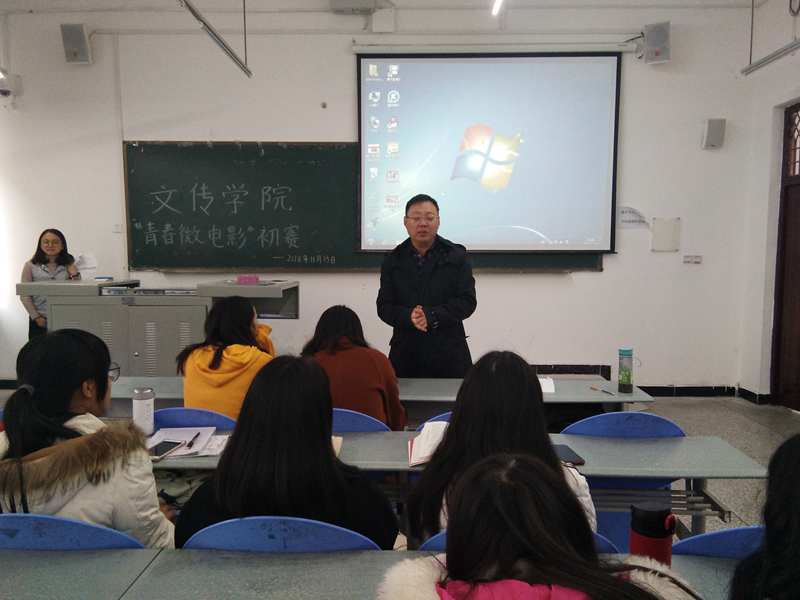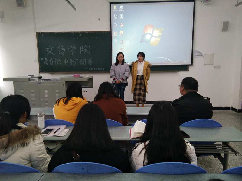 为响应共青团的号召,2018年11月23日上午10:00,文学与传媒学院在树人楼B102举行“青春微电影”大赛初选。学院潘春霖老师、冷冬雪老师以及学生干部谢佳妙担任评委,本次比赛参赛人员为2017级1班电影组以及2017级2班和藏本班合作电影组。