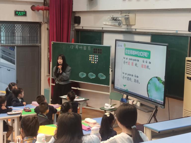 【本网讯】当清晨的第一缕阳光照向都江堰友爱学校,阿坝师范学院2022级汉语言文学1班的同学们又来到这里,开启第二天的见习。上午第一节课,同学们来到一年级四班李梦月老师的课堂,李老师以一个谜语导入她今天的课程——《荷叶圆圆》。在课中,又以勾画关键词、唱歌、分角色扮演的方式引领着孩子们学习本课堂知识,教学知识点清晰,课堂氛围活跃,让同学们见识了一堂精彩的语文课。