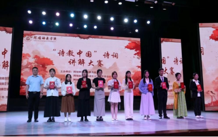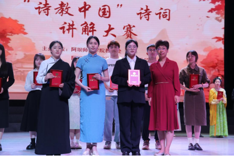 【本网讯】为深入传承和大力弘扬中华优秀语言文化,由阿坝师范学院教务处、语言文字工作委员会主办,文学与历史学院承的“诗教中国”诗词讲解大赛于2024年5月28日12:30在南苑剧场盛大举行。这一活动的举办不仅展现了阿坝师范学院对于传统文化教育的重视,也为师生们提供了一个展示才华、交流学习的绝佳平台。