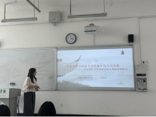 示范课结束后,蒋若昕老师结合自己的课堂教学,进行了课堂剖析与经验分享。她首先从课标要求、教材内容、教学目标、设计意图等多方面阐述了本堂课的设计思路,各环节环环相扣,逻辑清晰。其次,蒋老师分享了备课、赛课中的一些思考。她提到,历史教师要阅读专业书籍、核心期刊与论文,掌握学术前沿动态,同时还要研究高考题,把握考向。蒋老师也向同学们推荐了历史书籍、核心期刊、网络资源等相关资源,帮助师范生学习与提升自我。而后,蒋老师就如何进行教学设计与课堂教学提出了自己的见解。她指出,历史教师要大胆创新,重构教材,明确教学目标与重难点,同时要重点关注问题设置,设计深层次的探究问题与由浅入深的问题链,完成一堂充实、平实、真实的课堂教学。讲座最后,蒋老师以青年教师的专业发展对同学们表达了祝福和殷切希望。