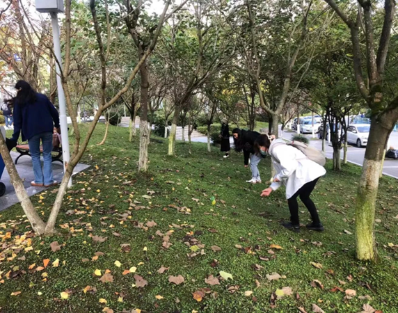 学院统一安排劳动任务、划分每班具体劳动区域、制定总体要求。同学们在学校南湖边清扫草坪落叶,清理道路垃圾,亲身参与、主动感受劳动的快乐。