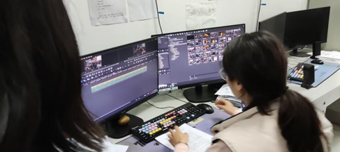 当天,同学们先后于视频编辑部和图文编辑部进行学习。在视频编辑部,指导老师杨田讲解部门工作内容和相关注意事项。杨田老师分享到,视频编辑部是将外出采拍的视频素材进行二次加工,以达到美观、高质和契合主题的目的。视频编辑时,要注意镜头的切换和机位,不能只是简单排列组合。杨田老师以当天新闻素材为范例向学生进行操作演示,让学生能够更直观地了解具体工作流程。同时视频编辑部梁恩茜部长为同学们分享到,新闻要以真实性为创作源泉,既要反映出表象的真实,又要揭示本质的真实。从表现手法看,需要注意拍摄的手法,以长镜头和同期声记录生活的本真形态,反对摆拍和虚构。