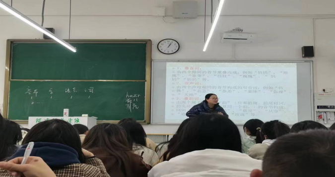 2022年11月24日下午5-6节课,赵云涛老师进行现代汉语示范教学课,为现代汉语课程组的青年教师进行示范教学;课后以本次课为教学案例,为胡洁和王俊丹老师介绍了本次课的教学设计思路,现代汉语课程以培养学生的语言分析能力的培养为教学重点来设计的教学,教学中不能生硬的照本宣科进行理论教学,教学引导学生观察PPT中的例子进行观察,发现规律,归纳特点,然后再启发学生用所学的理论知识进行实践。通过教学示范、教学思路和教学关键点的讲解,交给青年教师现代汉语教学如何体现应用性和教学中怎样去实现理论联系实际,培养学生分析语言、应用语言的能力。