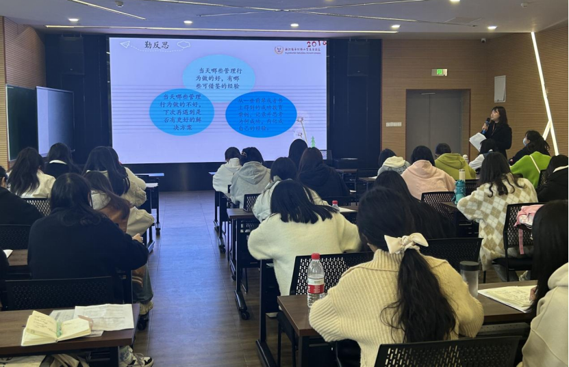 接着,刘老师以丰富的案例为大家分析了“勤反思”“乐沟通”“创活动”在班主任德育工作中重要性。刘老师建议,作为新手教师要经常反思自身的优缺点,还要积极向前辈、同行借鉴经验,积极阅读与班级管理相关的书籍,不断积累教学经验。刘悦老师勉励大家,作为未来的老师,要牢固树立终身学习的理念,要多读、多学。此外,沟通也是班主任老师需要必备的技能。刘老师指出,在家校共育的过程中,教师要学会换位思考。教师要及时与家长反馈学生情况,但不要一味指责;要善于发现学生的进步之处,并通过班级信箱、写日记等多种途径与学生进行深入沟通,充分了解学生心理变化,共同促进学生成长。
