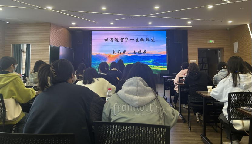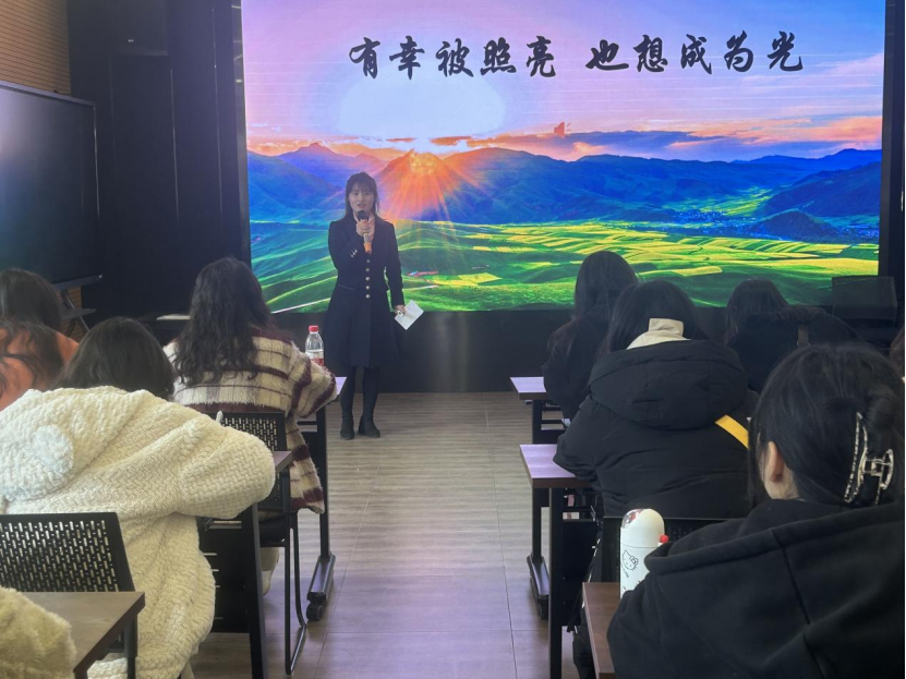 【本网讯】为提升师范生专业发展与成长,加强师范生的班主任专业技能,2023年3月27日下午,阿坝师范学院文学与传媒学院2021级汉语言文学1班赴都江堰永丰小学教学实践团队邀请该校教师李德琰开展了以“有幸被照亮 也能成为光”为题的有关班级建设的讲座。讲座在永丰小学蒲公英艺术大厅召开,带队老师高璐、梅伟、熊刚及2021级汉语言文学1班全体同学参加了此次讲座。