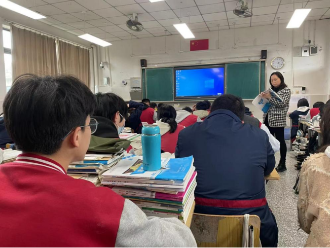 卢燕老师在初三三班的教室里,为同学进行错题讲解,让同学们在亲切的氛围中得到成长和进步。坐在教室后面观摩的同学们也感受到了她的春风和煦,深深地陶醉在她的语言中。