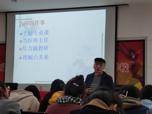 下午2:30,同学们走进图书馆二楼会议室,听取马保国老师精心准备的讲座“功在讲台外”。马老师结合自身经历将为师四件事娓娓道来:上好专业课、当好班主任、尽力搞教研、理顺六关系,同学们受益匪浅。