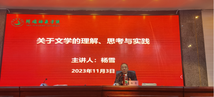 在我校学术报告厅,杨雪围绕文学的五个特性,为学校师生作了题为“关于文学的理解、思考与实践”的主题讲座。杨雪讲到,要成为优秀作家与地域紧密相关,每个地方都有自己独特的文化传统和特色,这些元素通常能够反映在文学描写中。我校位于山清水秀的阿坝藏族羌族自治州,有优美的风景还有少数民族文化以及红军长征故事,应深入了解这些素材进行创作。杨雪谈到,要有自己独立思考,加强思想修为,深入研读不同书籍,面对批判文学,要有自己的价值观,增强自己的文学素养,形成自己独立人格。杨雪强调,任何文学都不会脱离时代,任何文学作品都能够反映出作者生活的时代特征与时代背景,文学作品是带有时代印记的,当今中西方不同的时代背景不同的文学写作,在新时代下,我们要用心感受写作,体验写作,创新写作。