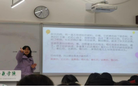 活动中,授讲人认真授课,同学们认真听讲。在各组分享后,每组依次就教学设计、课堂互动、板书展示、语言情感、时间把握、ppt制作、声音大小、授课教态等方面提出优缺点评。班级气氛活跃,同学们在接受点评的同时,也在吸收他人的经验。