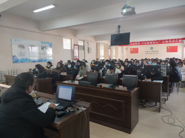 【本网讯】2021年12月2日14:30,阿坝师范学院文学与传媒学院21级汉语言文学一二班全体同学在赴茂县七一中学跟岗学习期间参加了由陈驰老师主讲的专题讲座—“如何打造公开示范课”。