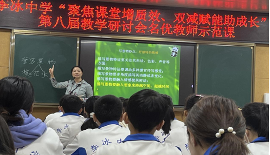 本次示范课由李冰中学名优教师王芳、杨林主讲。王芳老师示范课的题目为“见自然,见天地,见自我——学会写景”,通过前置作业——“你看到的校园美景”的分享和单元课文《三峡》的写景分析,王芳老师和李冰中学的同学们为大家带来了一堂生活有趣的写作课,让写作不再是语文学习的“拦路虎”。
